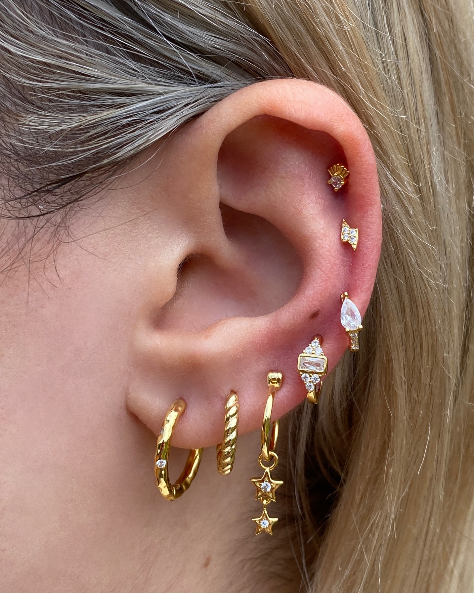 Simple studs to pair with any outfit, yes please! Shop our Mira Stud Earrings in Gold, these sterling silver studs 18k gold plated can be worn on their own or paired with similar studs or hoops for a nice layered look.