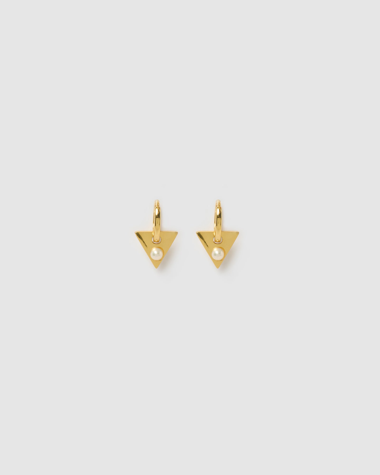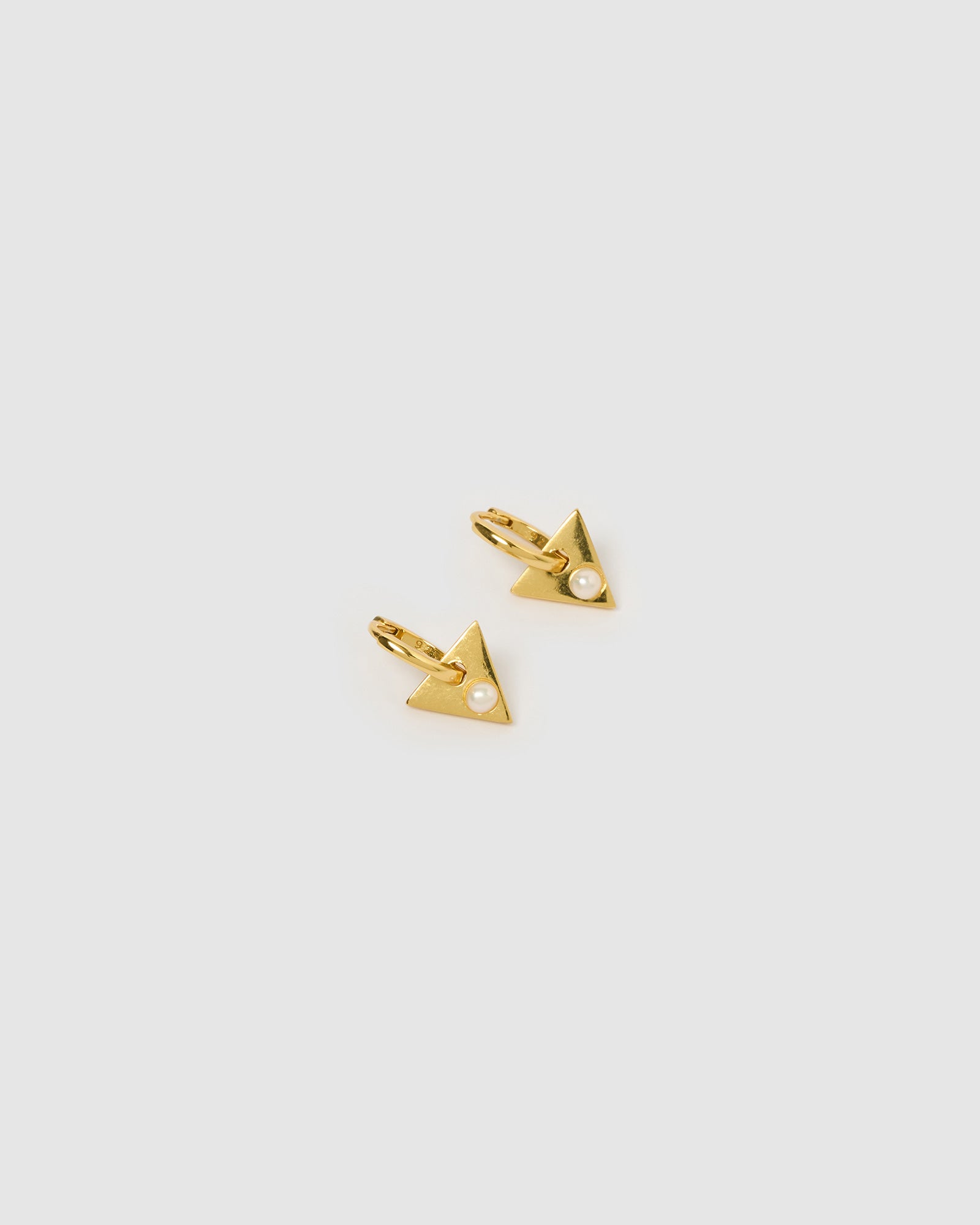 The Promise Huggie in Gold Freshwater Pearl are the simple, stylish earrings to add to your collection. This small, simple huggie in 18k plated gold with a triangle drop design features a natural freshwater pearl which encompasses sophistication.