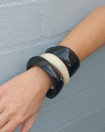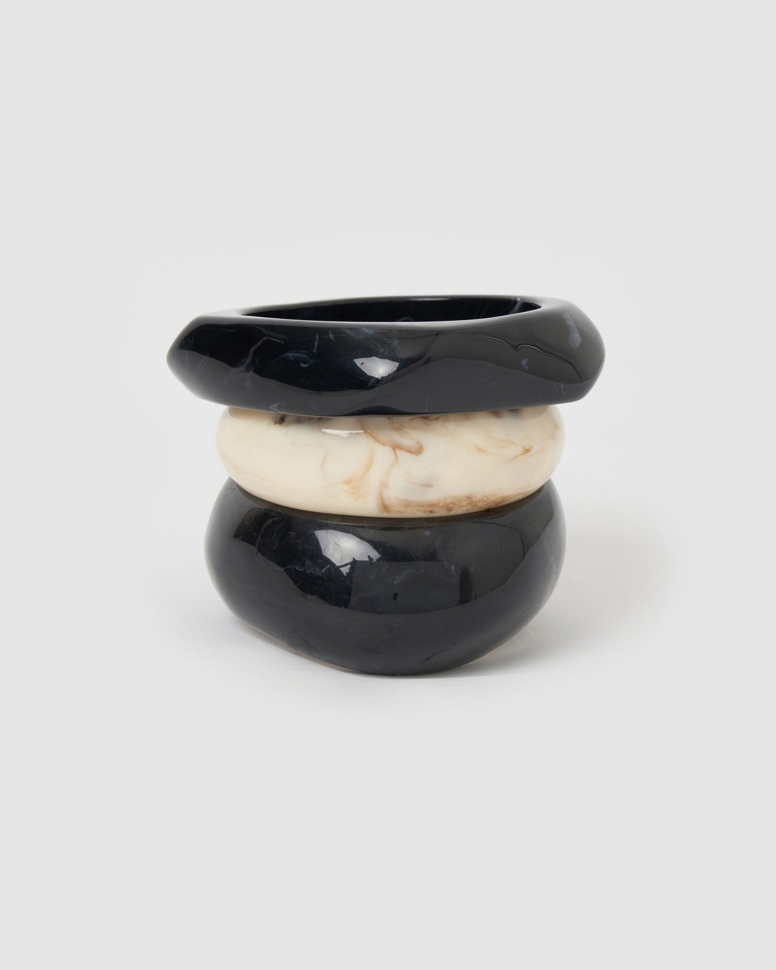 The new Storm Bangle Stack is a must have! These chunky marble bangles suitable for all wrists and occasions. Bold colours and soft marble patterns will add an element of sophistication to your casual look or layered nicely with plain gold bracelets for a night on the town.