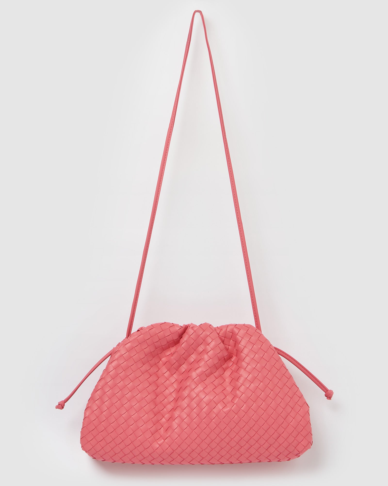 The Izoa Vincenza Woven Bag in Hot Pink combines eye-catching style with practical functionality. This statement leather handbag showcases beautiful woven construction that adds texture and sophistication to any outfit.
