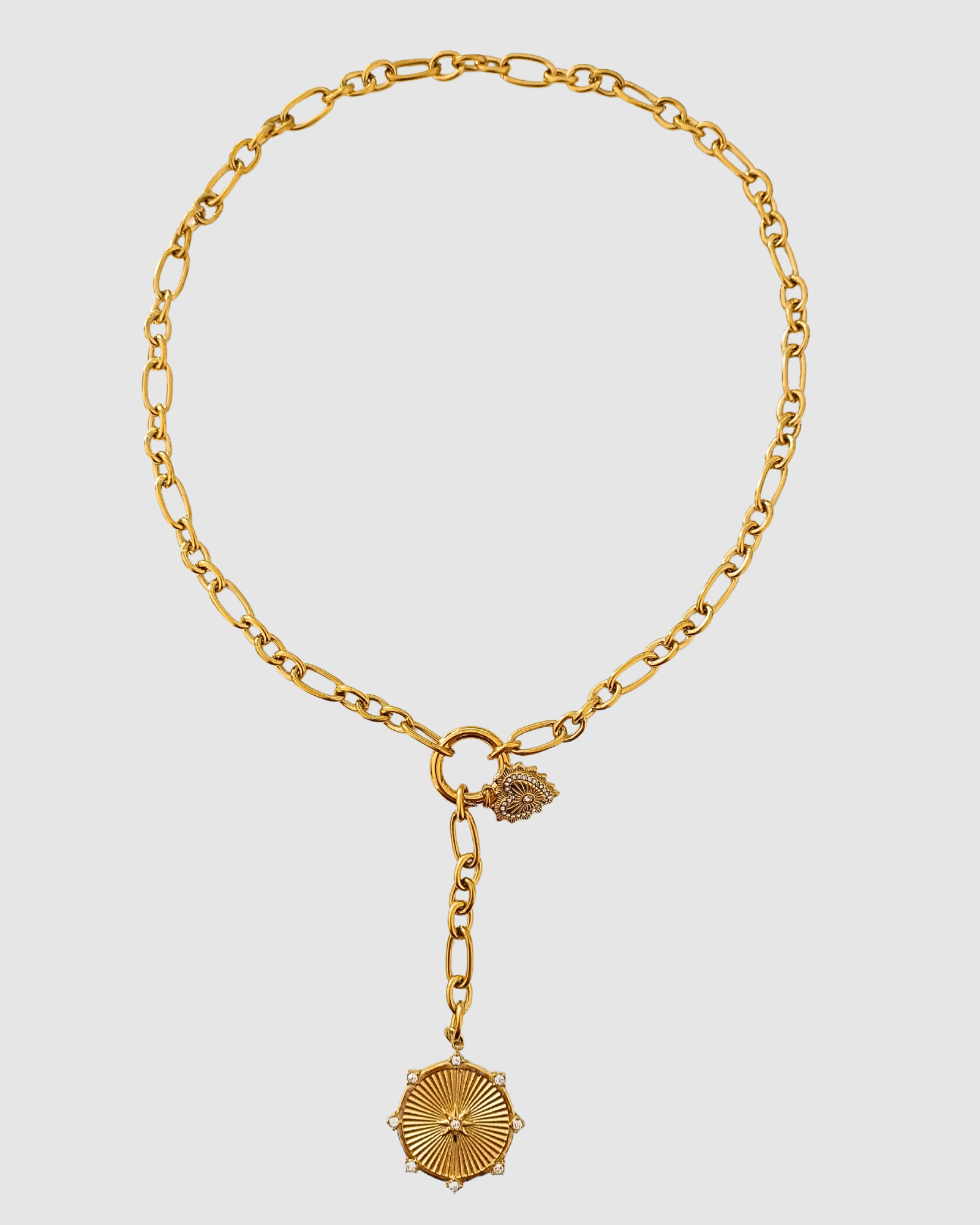 The Amanda Pendant Necklace is the perfect blend of bold elegance and delicate charm. Featuring a chunky gold loop chain, this statement piece is adorned with a sparkling crystal star charm and a dainty heart pendant, adding a touch of celestial beauty to your look. Whether worn alone or layered, this necklace effortlessly elevates any outfit with its modern yet timeless appeal.