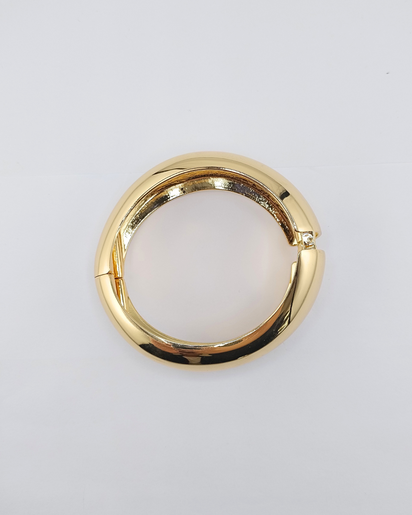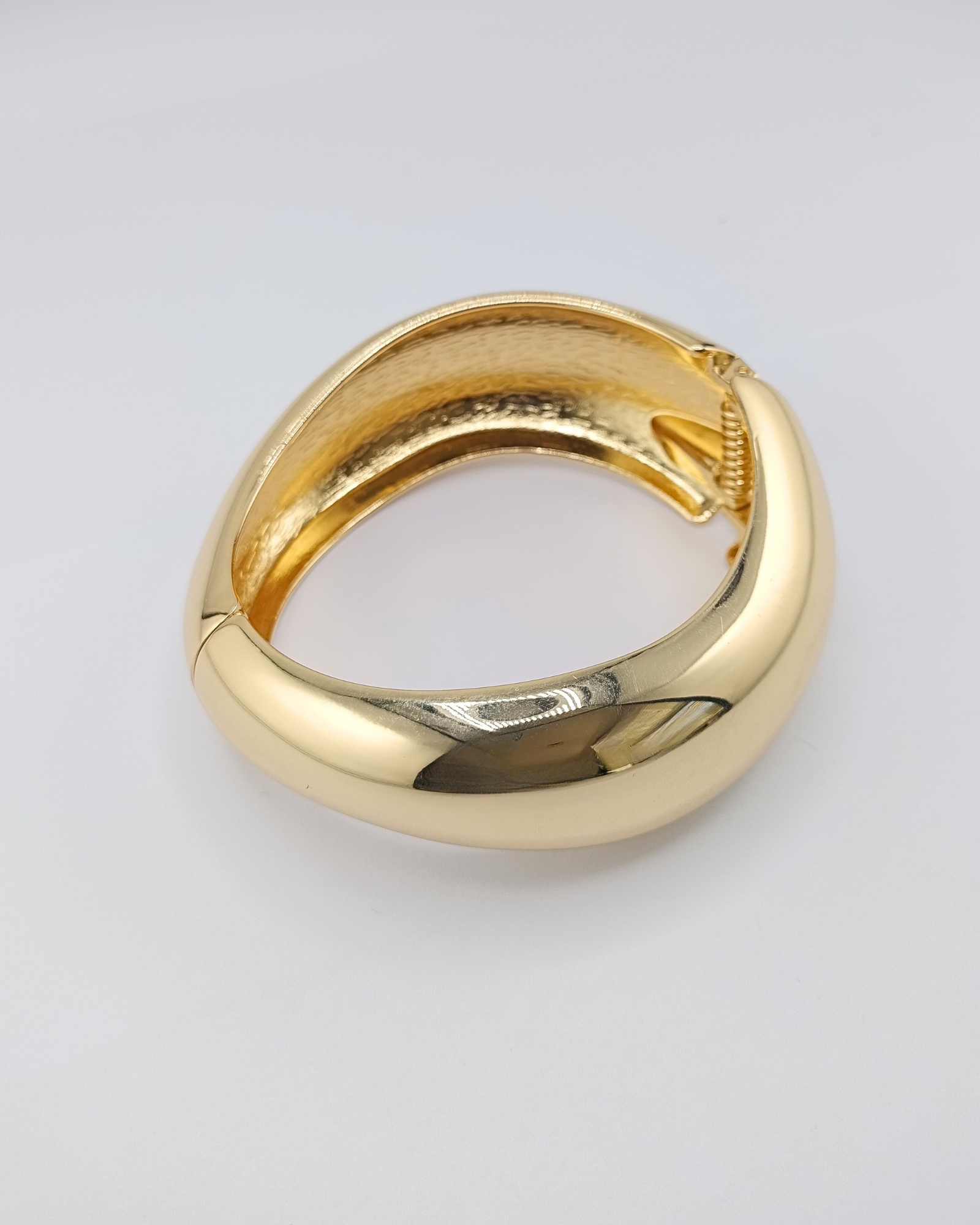 Add a bold, polished touch to your jewellery look with the Izoa Wave Bangle. Featuring a sleek, 18k gold plated finish, this statement bangle is designed with a modern waved pattern silhouette and a secure hinge clasp for effortless on and off wear.