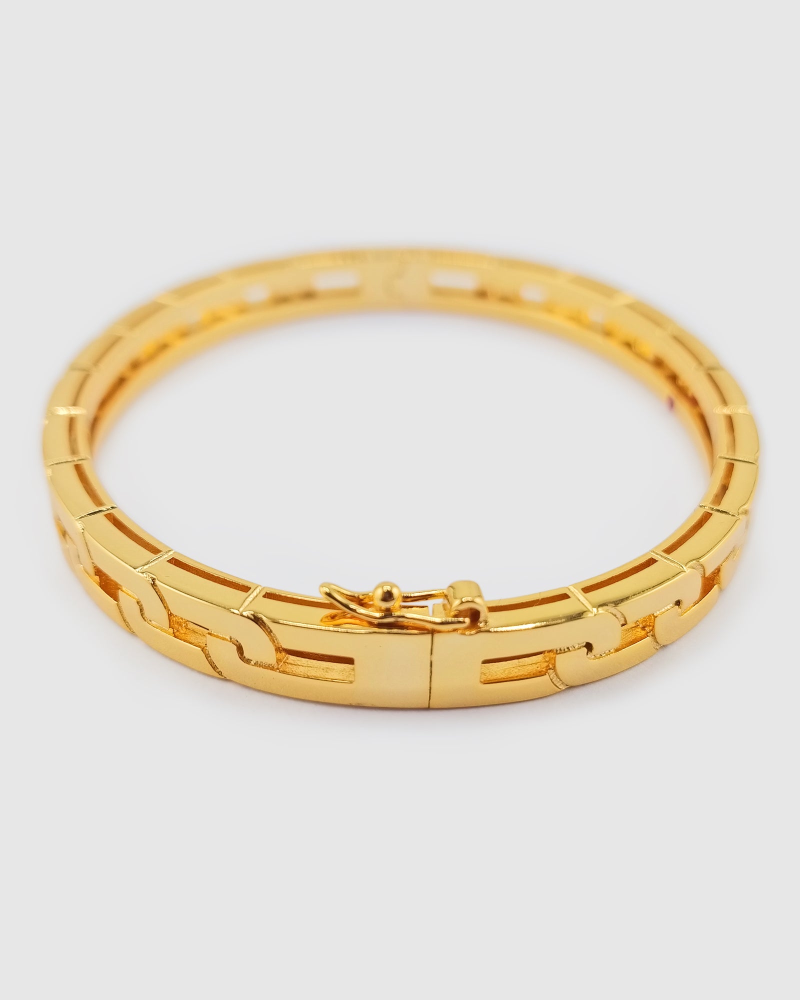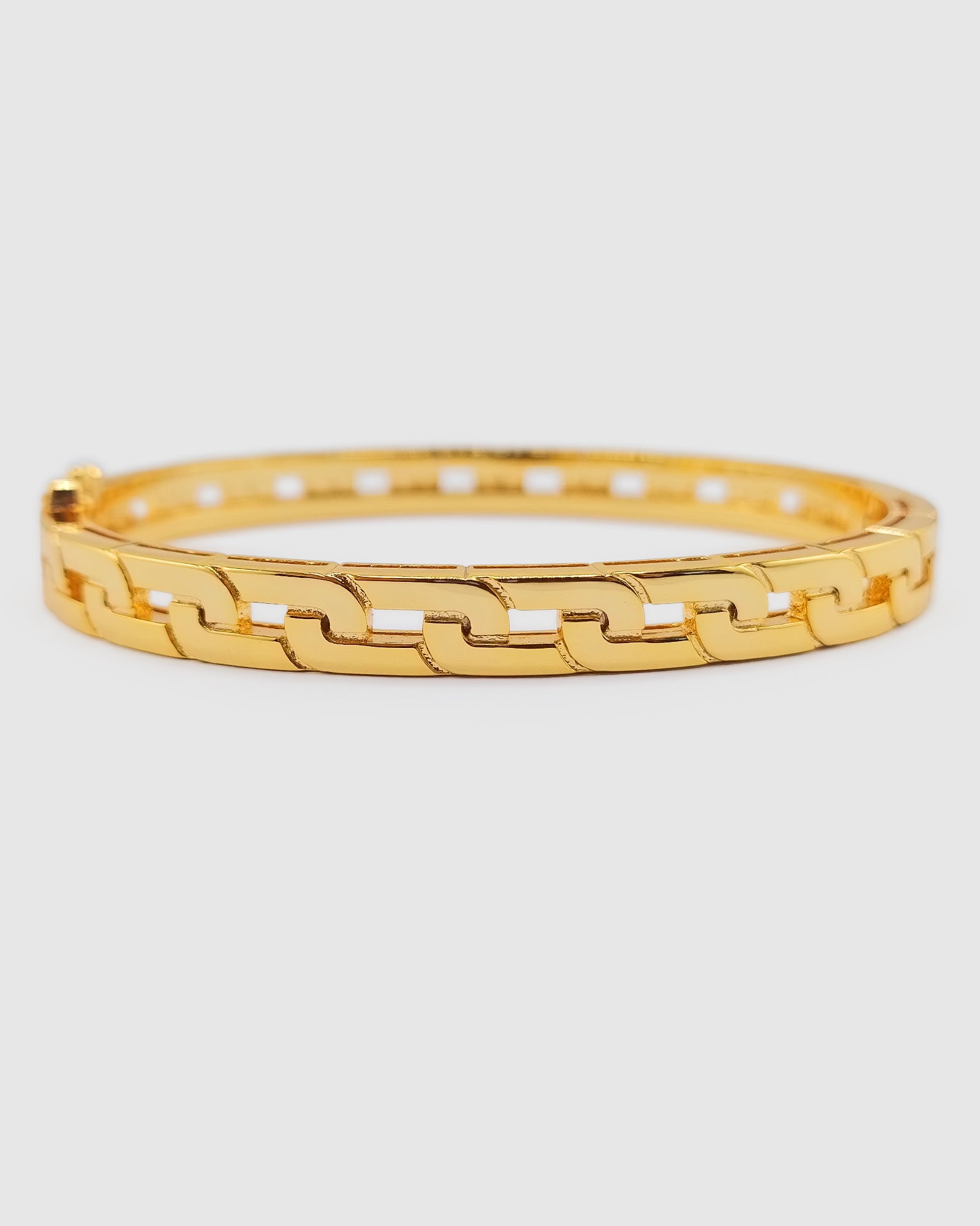 Shop our Diana Linked Cuff in Gold and let your wrist do all the talking. The Diana Linked Cuff Bracelet is a must have staple piece! Handcrafted from lustrous 18-karat gold plating, this stunning accessory features a bold design that commands attention with its intricate craftsmanship and captivating allure.