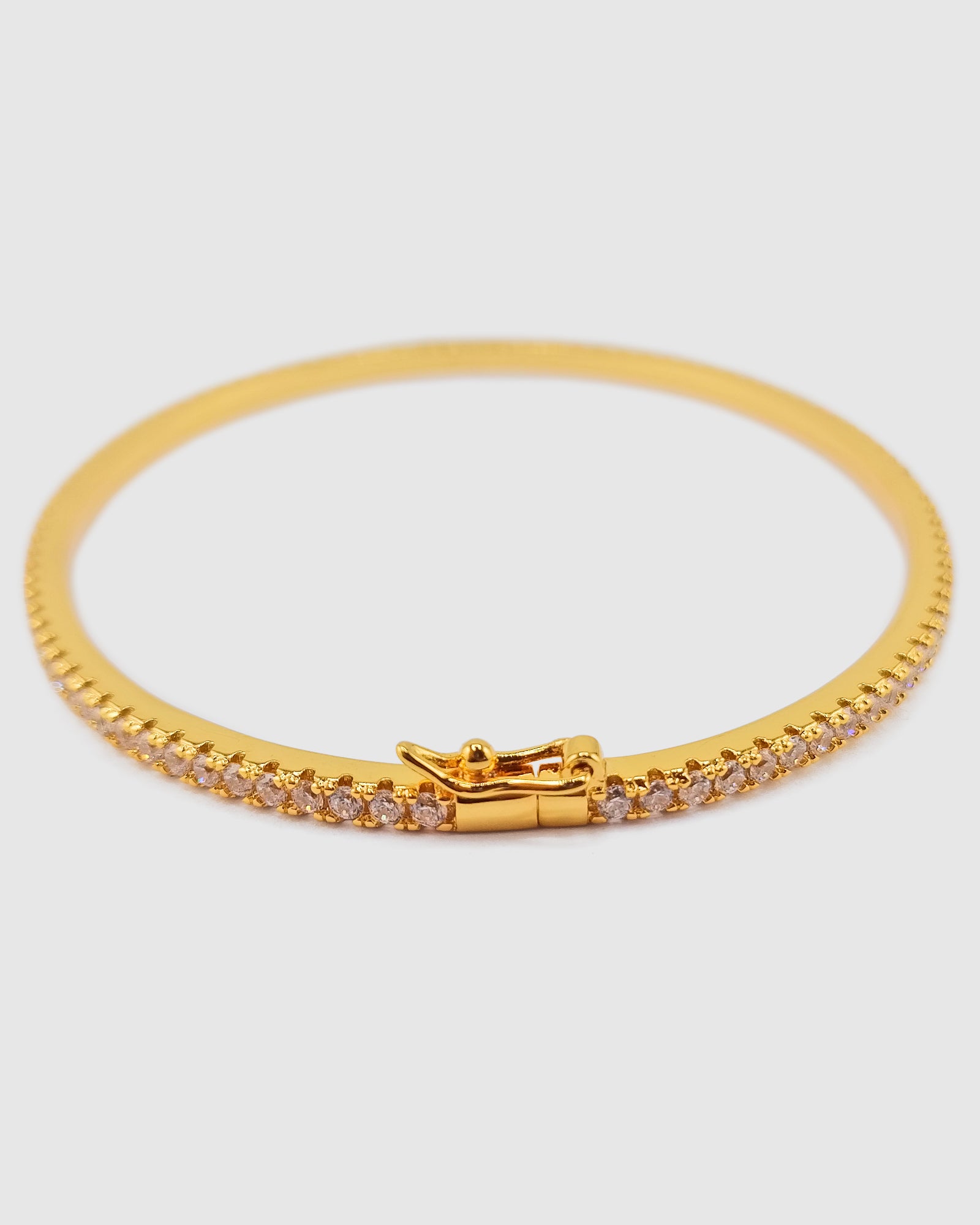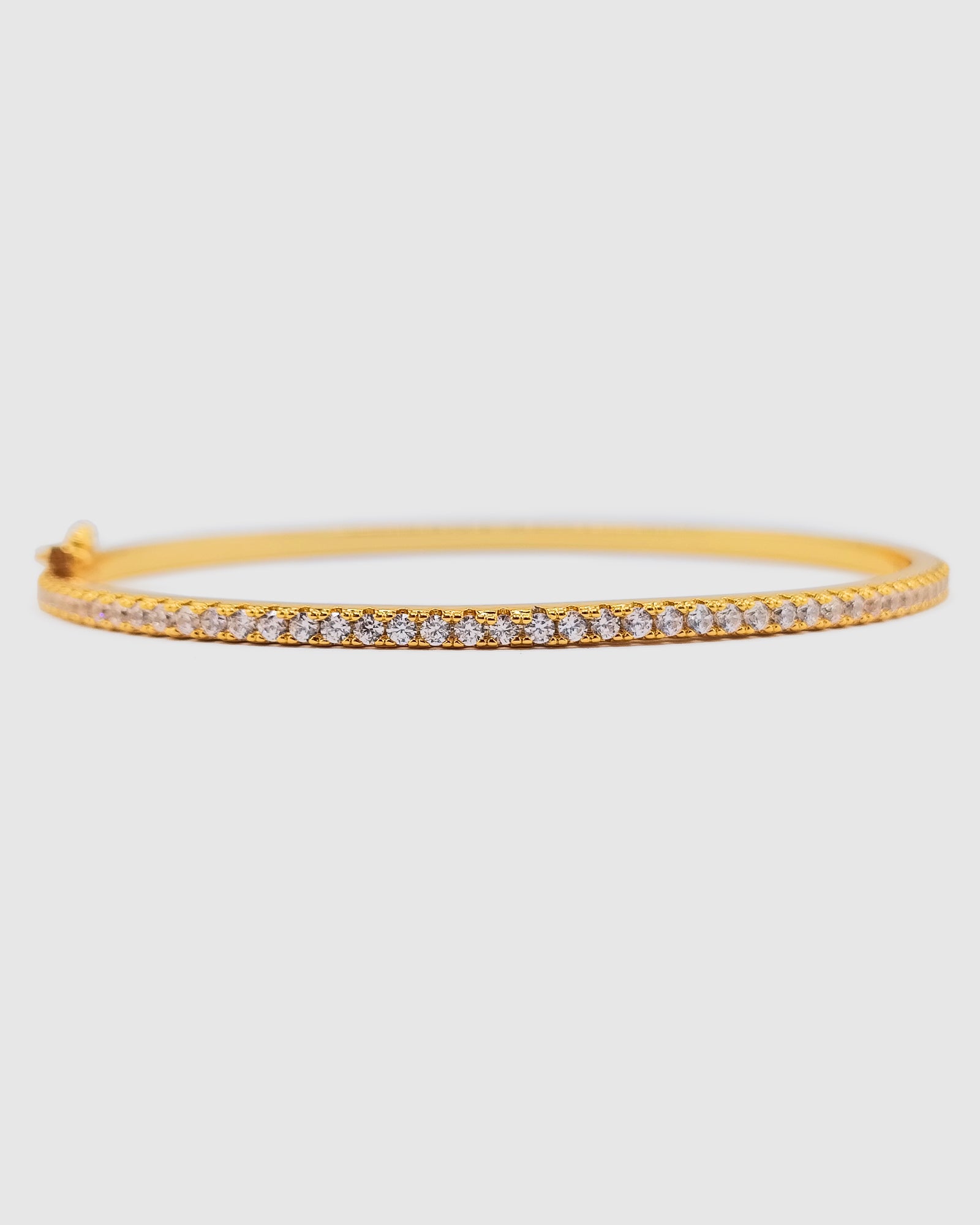 Add timeless sparkle to your jewellery collection with our Emily Cuff in Gold Cubic Zirconia. Designed to catch the light from every angle, this elegant cuff features all-around clear cubic zirconia stones set in a polished 18k gold finish. The soft-closing clasp ensures a secure and comfortable fit, making it perfect for both everyday wear and special occasions.