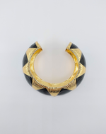 Elevate your style with the Izoa Thalia Chunky Vintage-Inspired Cuff, a statement piece that channels classic glamour with a modern edge. Crafted from durable brass and finished in luxurious 18k gold plating, this cuff features a striking black enamel design that adds depth and sophistication to any outfit.
