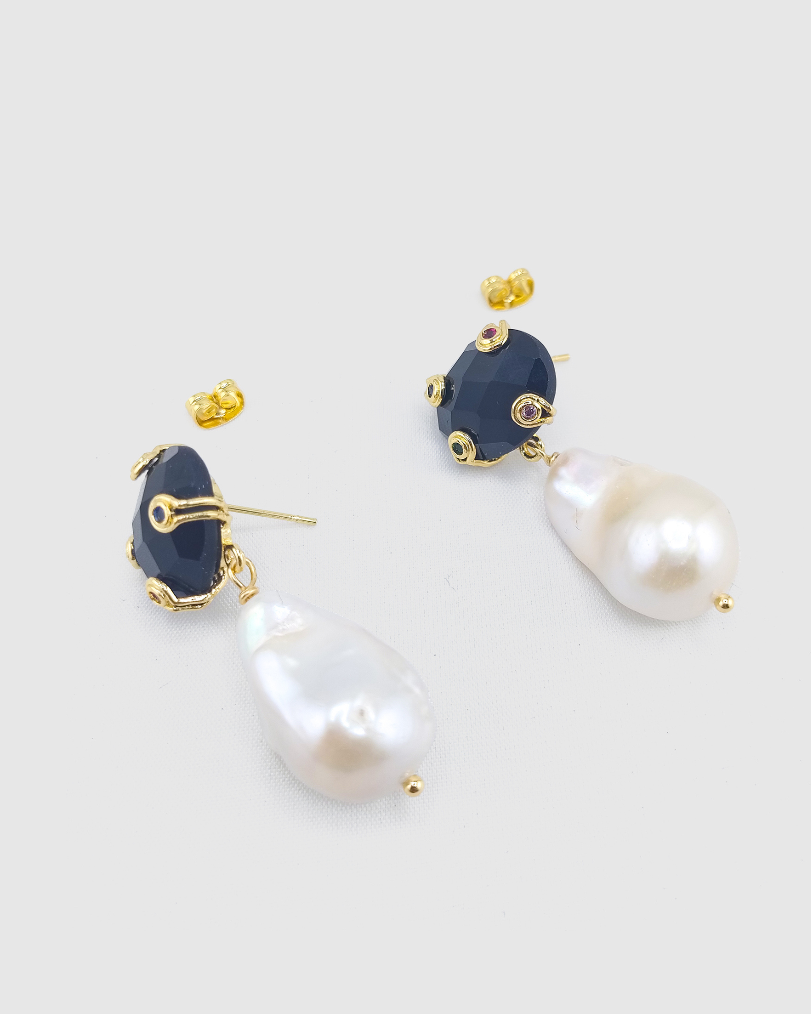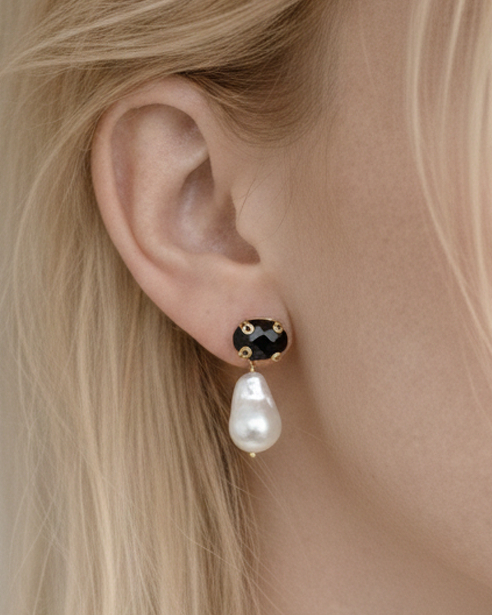 Meet your new statement essential: the Kiara Baroque Pearl Earrings — a bold blend of timeless elegance and modern edge. Designed to turn heads, these freshwater pearl drop earrings feature a luminous baroque freshwater pearl suspended beneath a striking black obsidian gemstone stud.