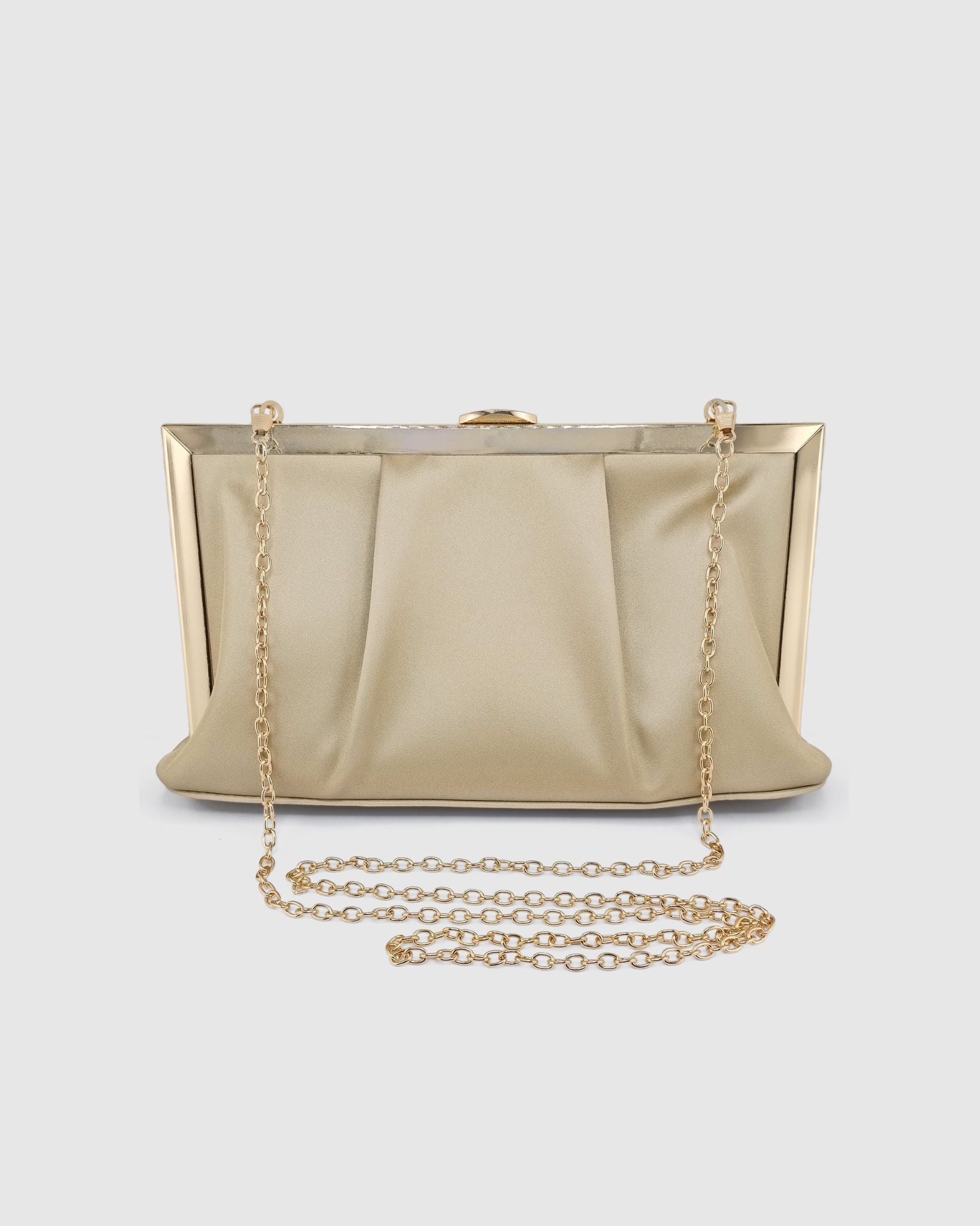 Chic, timeless, and endlessly versatile — the Gia Pleated Clutch in Gold is your go-to accessory for any special occasion. Crafted from high-quality premium PU pleated leather, offering the luxurious look and feel of genuine leather with added durability and ease of care. The smooth, refined finish gives each piece a polished look, while the supple texture ensures a soft, comfortable carry. This sleek clutch is framed with a luxe gold soft case for a structured silhouette. The clasp closure at the top adds a vintage-inspired touch, while the long gold chain strap allows for easy crossbody wear. Compact yet roomy enough to fit your iPhone and essentials, it’s perfect for weddings, evenings out, or elevated everyday styling.