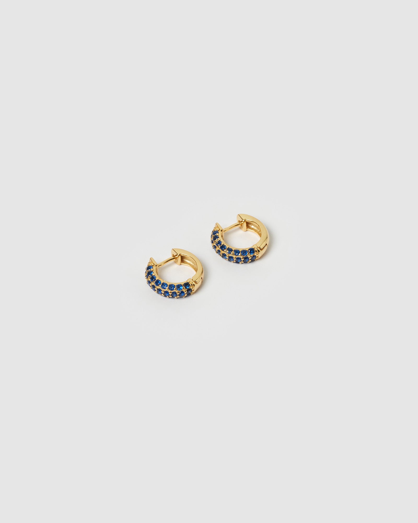 Izoa Chelsea Mini Huggie Earrings Gold Blue