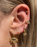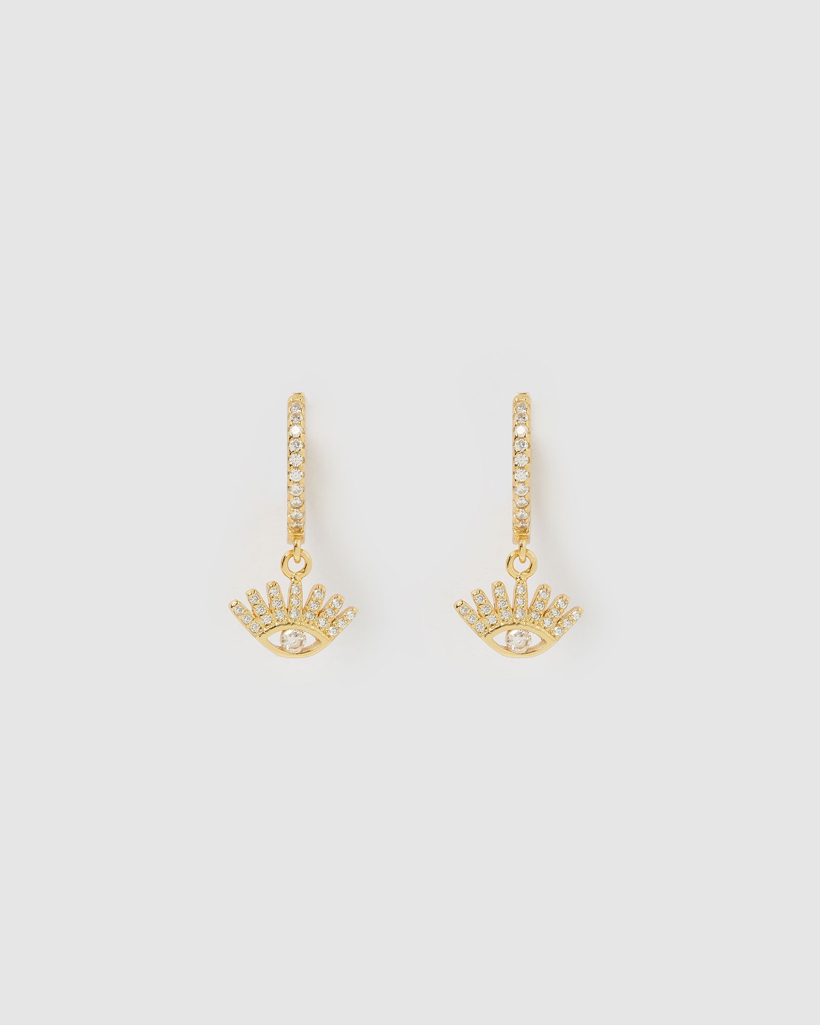 Our Kyden Huggie Earrings in Gold are a petite style fit. Eye motif following on Egyptian trends and beliefs to ward off evil sprits. A great style to be worn daily.