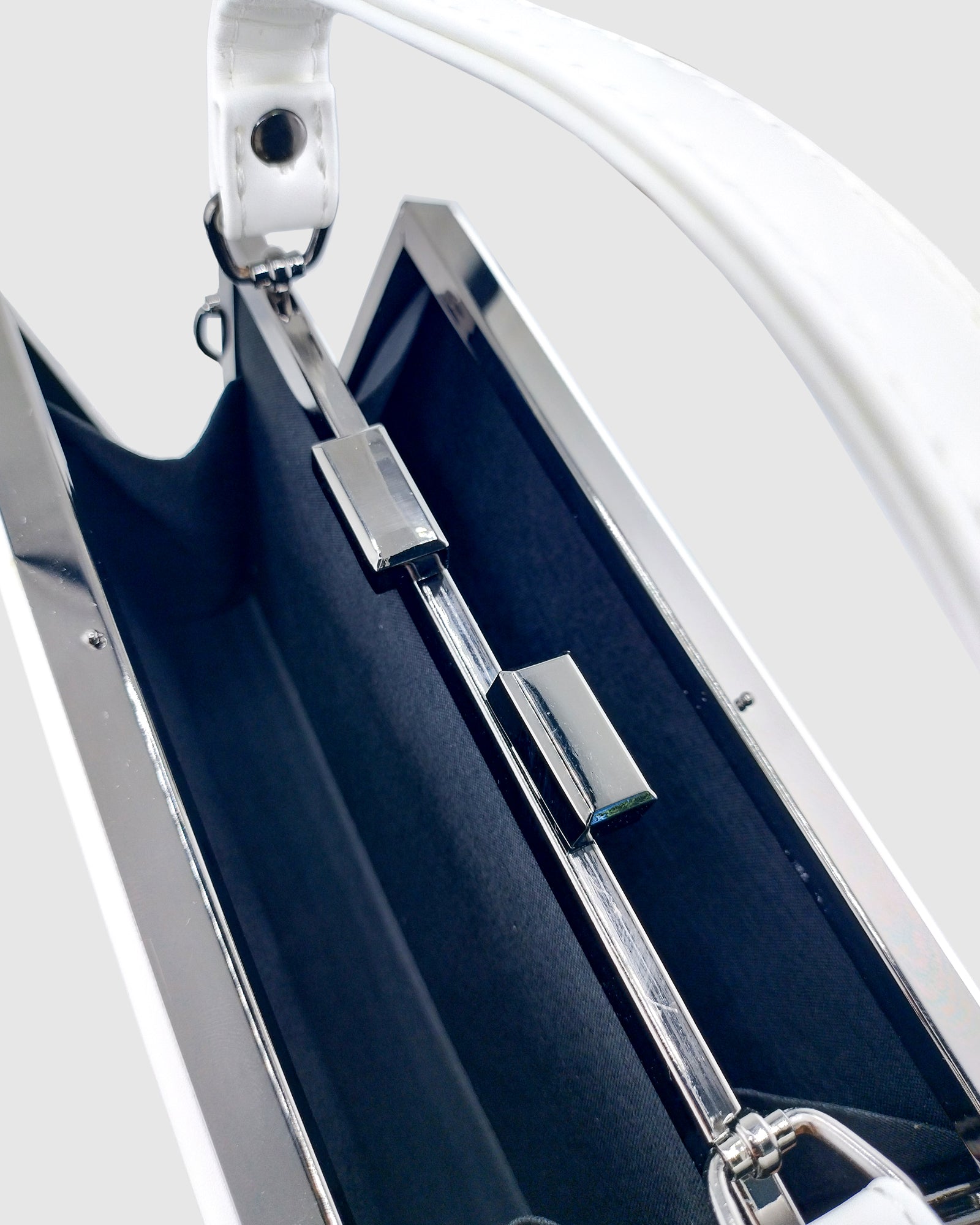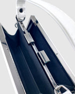 Chic, timeless, and endlessly versatile — the Brianna Clutch in White is your go-to accessory for any special occasion. Crafted from high-quality premium PU pleated leather, offering the luxurious look and feel of genuine leather with added durability and ease of care. The smooth, refined finish gives each piece a polished look, while the supple texture ensures a soft, comfortable carry. This sleek clutch is framed with a luxe gunmetal hard case for a structured silhouette. The clasp closure at the top adds a vintage-inspired touch, paired with a sleek white handle for the perfect shoulder bag. Also features a long silver chain strap allows for easy crossbody wear. Compact yet roomy enough to fit your iPhone and essentials, it’s perfect for weddings, evenings out, or elevated everyday styling.