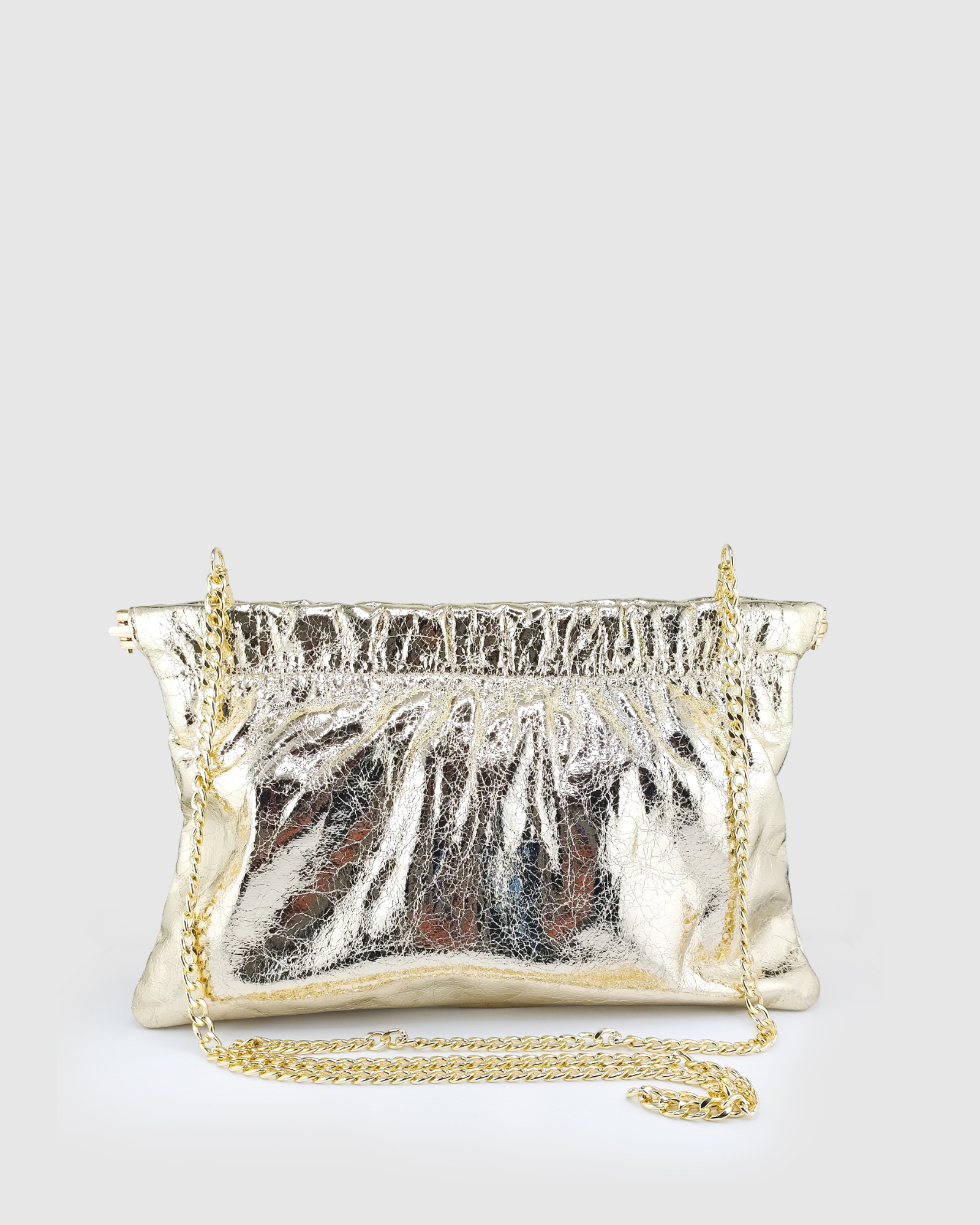 Whether you're heading to a special event or want to elevate your everyday look, the Leona Clutch offers versatile wear with two strap options: a convenient wrist strap for effortless carrying and a chic chain strap that transforms it into a crossbody bag.