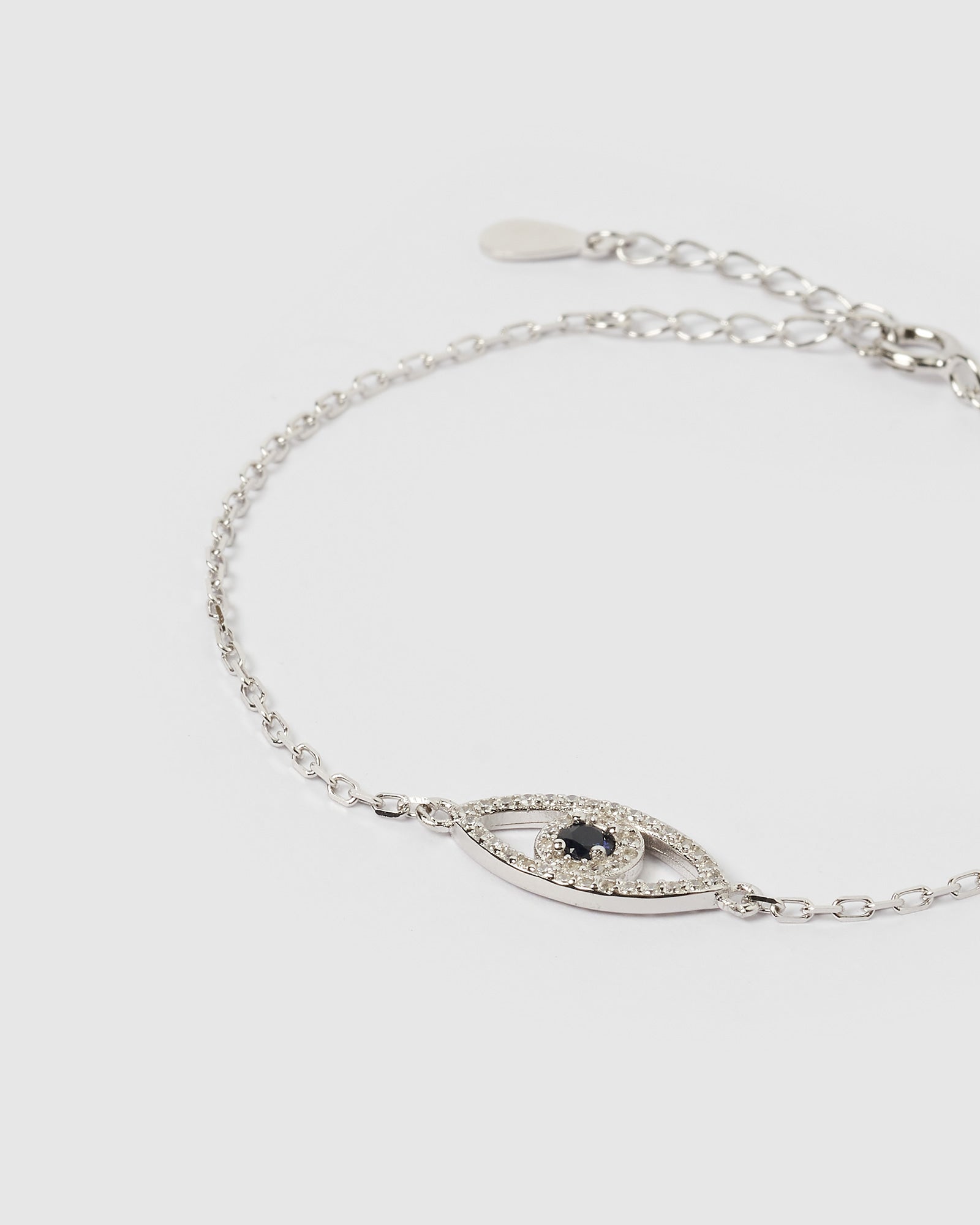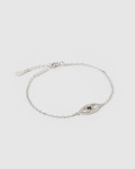 Shop our Arti Eye Bracelet in Silver for the perfect addition to your everyday accessories. This petite style chain bracelet is easily layered upon for a stacked look, featuring a cubic zirconia embellished evil eye.