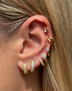 Make a statement with your style and embrace the timeless allure of gold with our Lucia Huggies featuring clear cubic zirconias in a cross pattern. These huggie earrings are the perfect blend of sophistication and versatility. These gemstone huggie earrings are a simplistic yet ravishing pair of earrings that you're set to fall in love with.