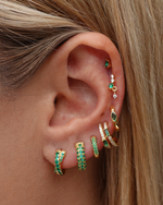 Make a statement with your style and embrace the timeless allure of gold with our Lucia Huggies featuring green cubic zirconias in a cross pattern. These huggie earrings are the perfect blend of sophistication and versatility. These gemstone huggie earrings are a simplistic yet ravishing pair of earrings that you're set to fall in love with.