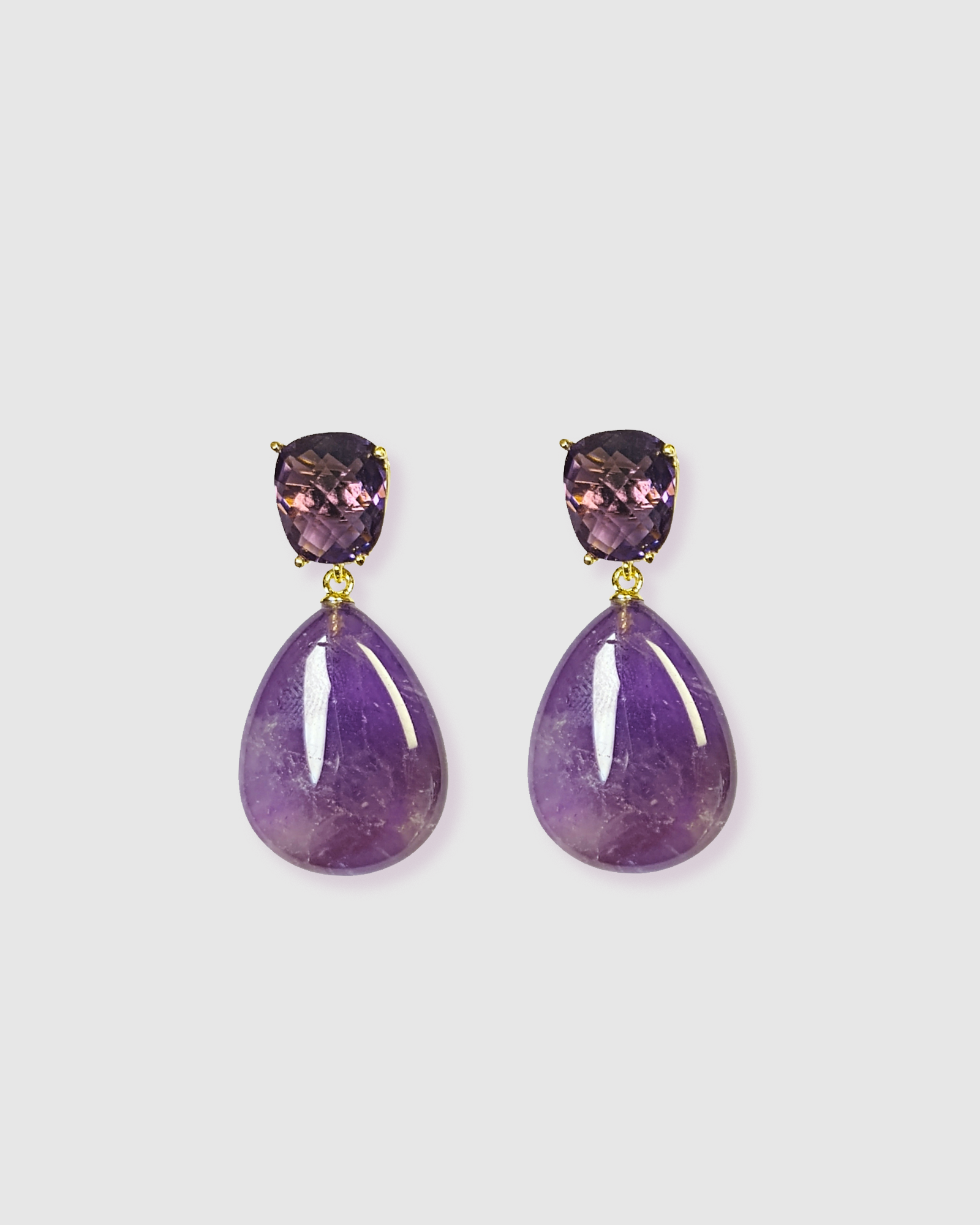 Elevate your jewellery collection with the soft, feminine beauty of our Velora Earrings in Amethyst. Featuring two delicate amethyst stones set on a polished 18k gold stud, these earrings effortlessly blend elegance with everyday wearability. One stone sits gracefully at the ear, while the other gently drops below, creating a subtle movement and sophisticated shimmer with every turn.