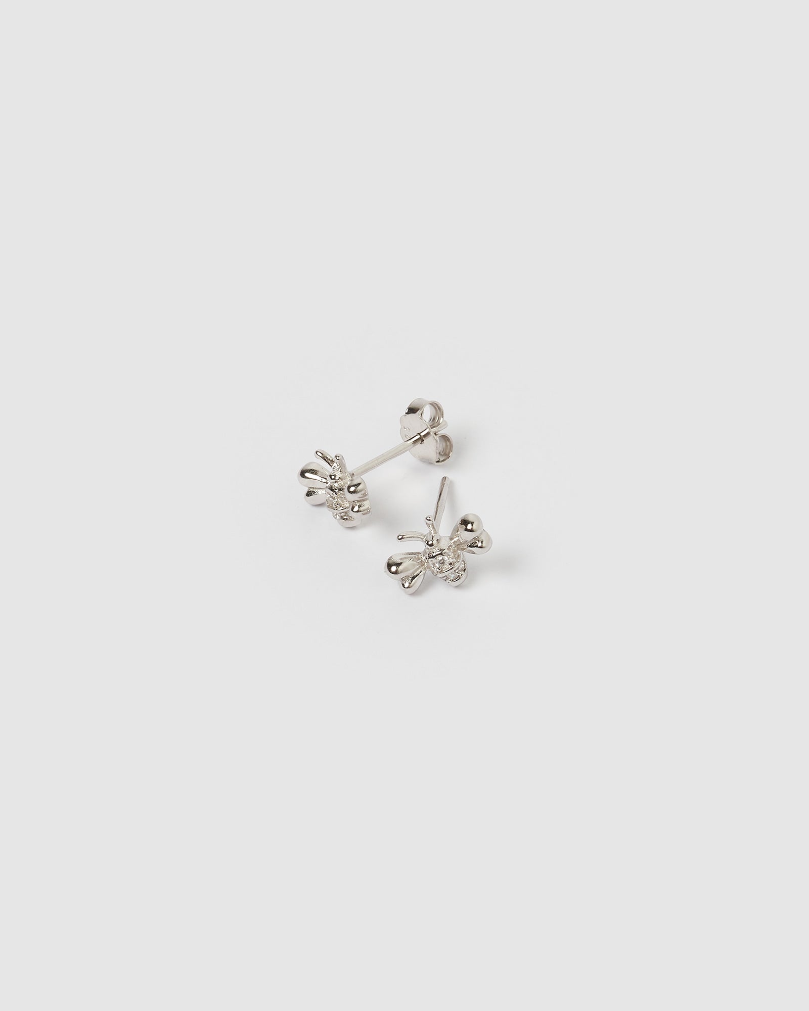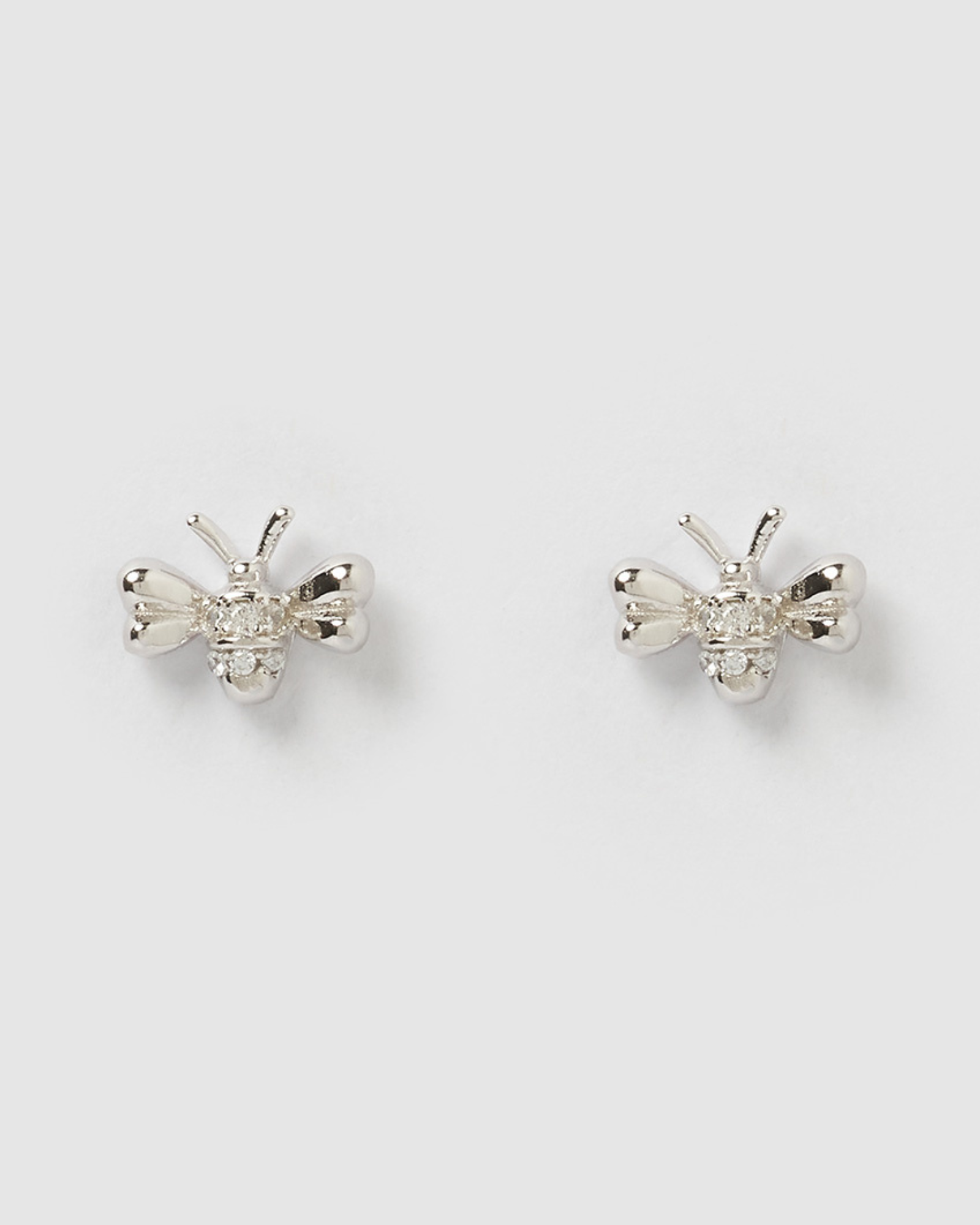 Shop petite style earrings online at Izoa. Our Bumble Stud Earrings in Silver are a petite style fit. Inspired by bumble bees this style earring is simple and dainty embellished with cubic zirconias for that added sparkle.