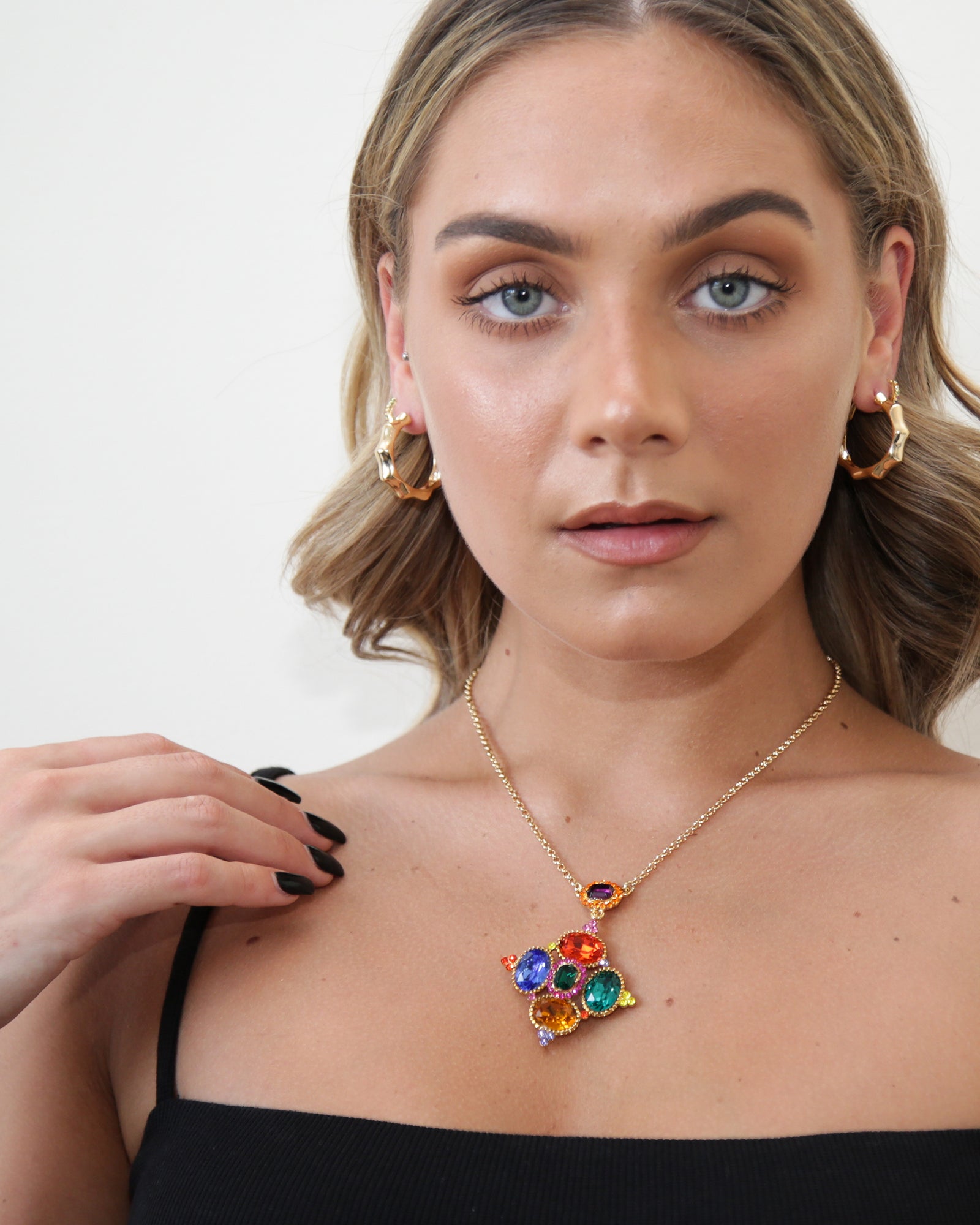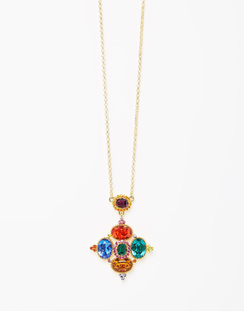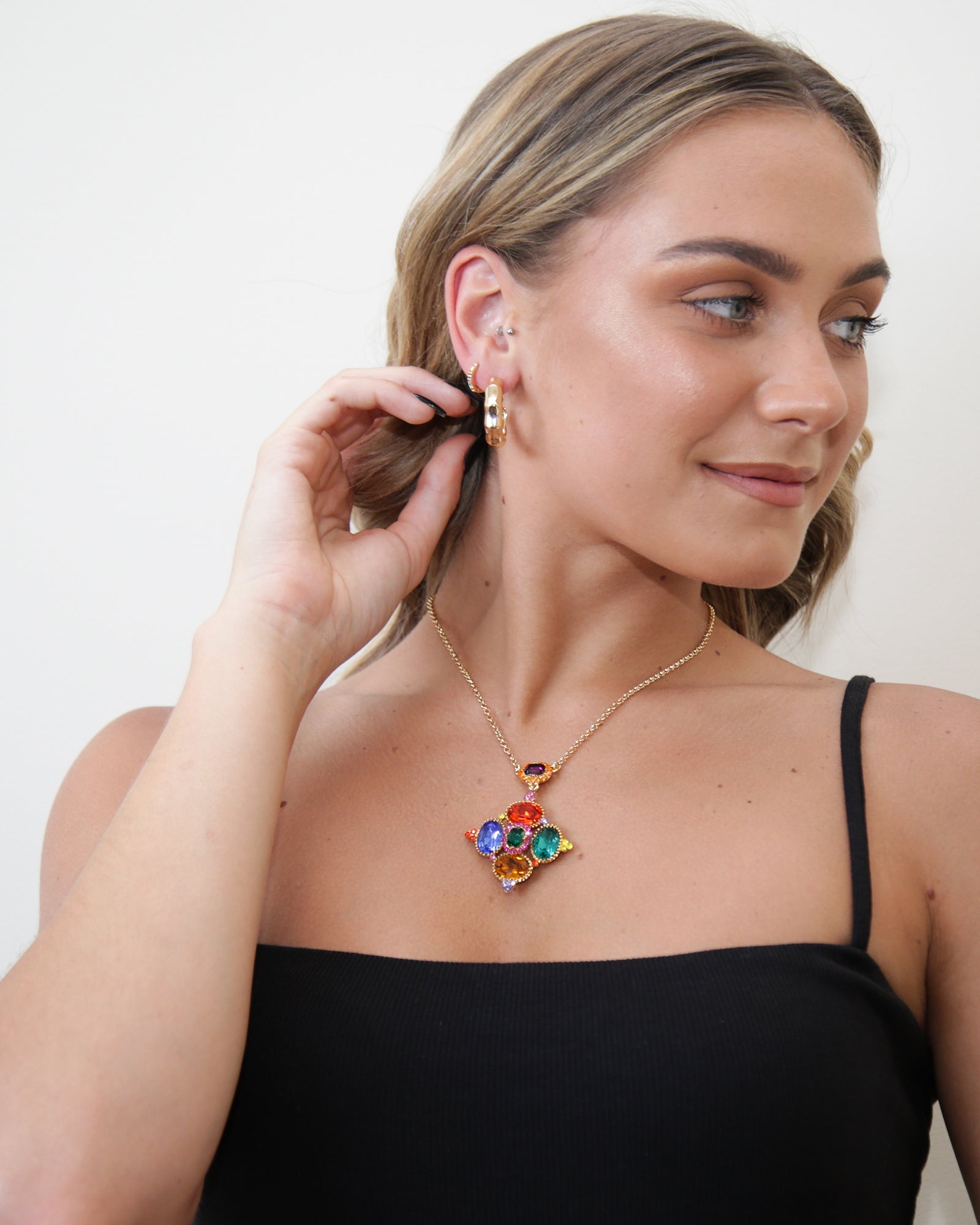The Magnolia Pendant Necklace is sure to charm with its rainbow coloured crystals and cross emblem design. A dazzling addition to any look, this is a standout piece that adds a sense of fun and frivolity.
