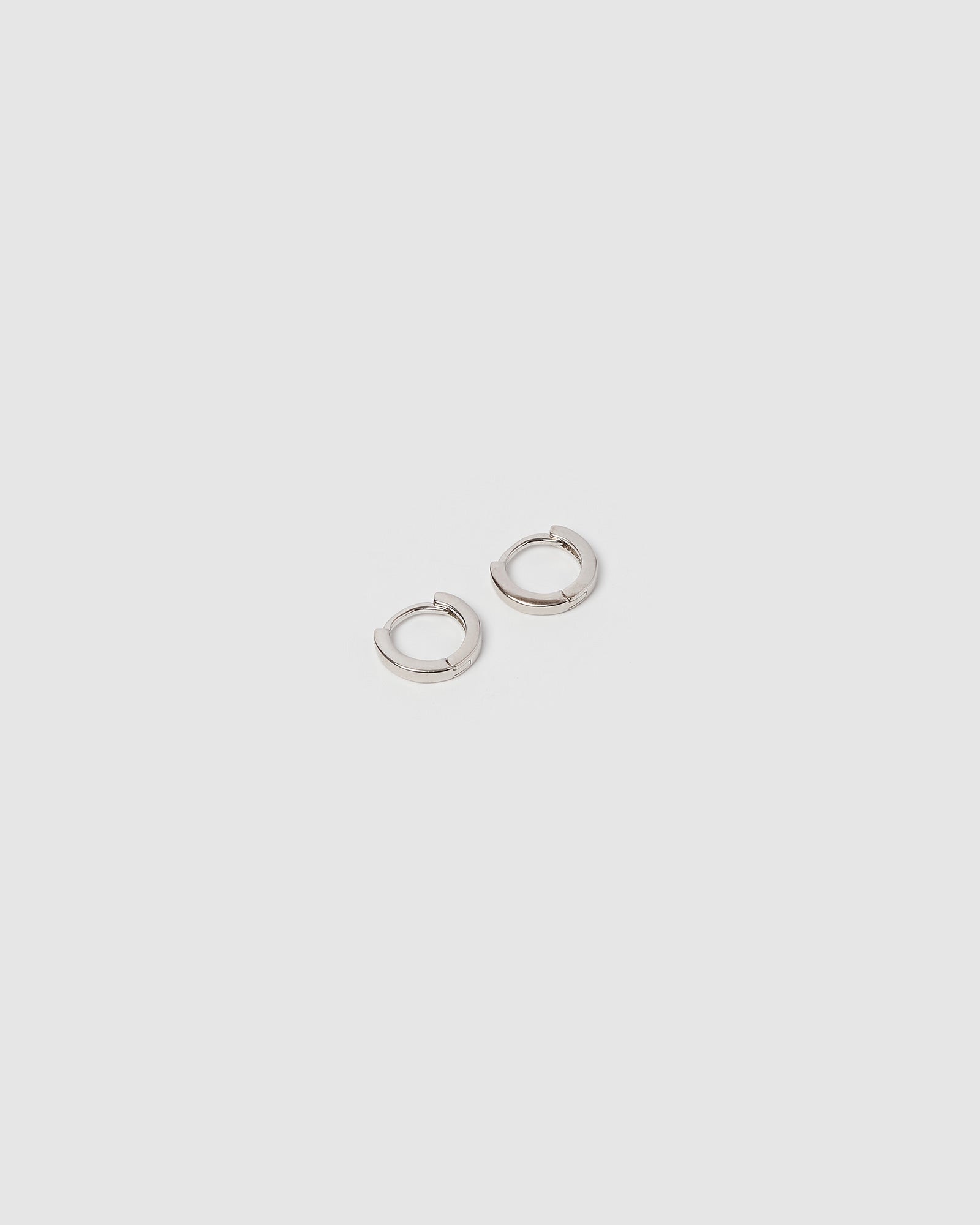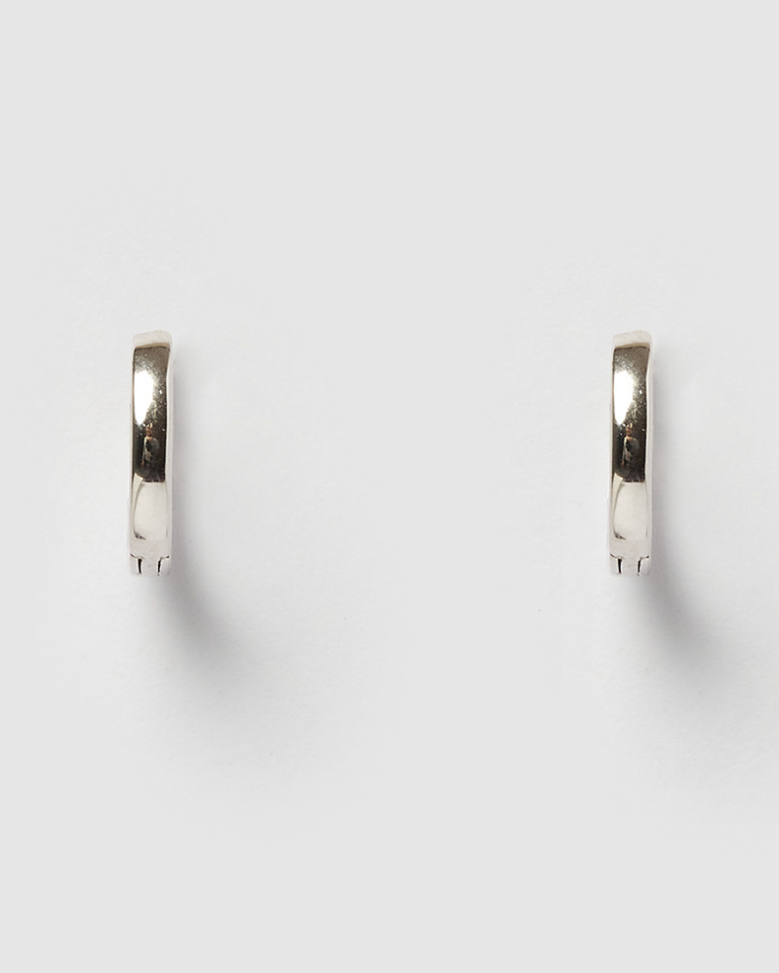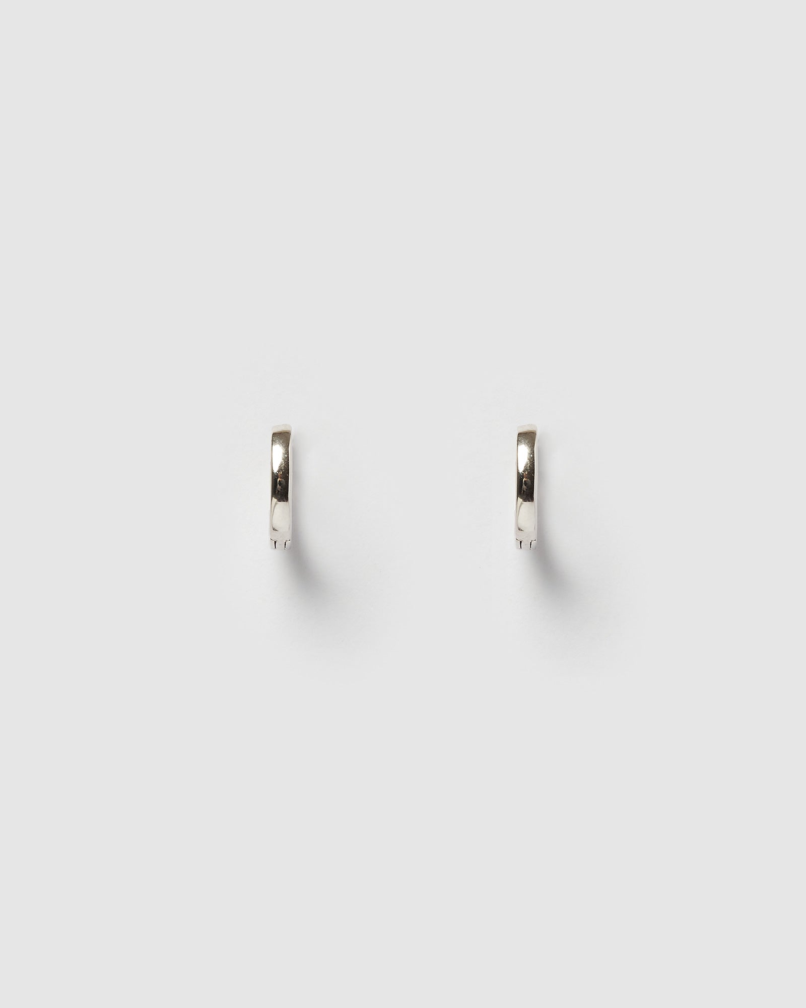 Shop huggie style earrings online at Izoa. Our Solid Huggie Earrings in Sterling Silver are petite style fit. These smooth finished earrings can be worn everyday and paired with similar style huggies for a layered textural look.