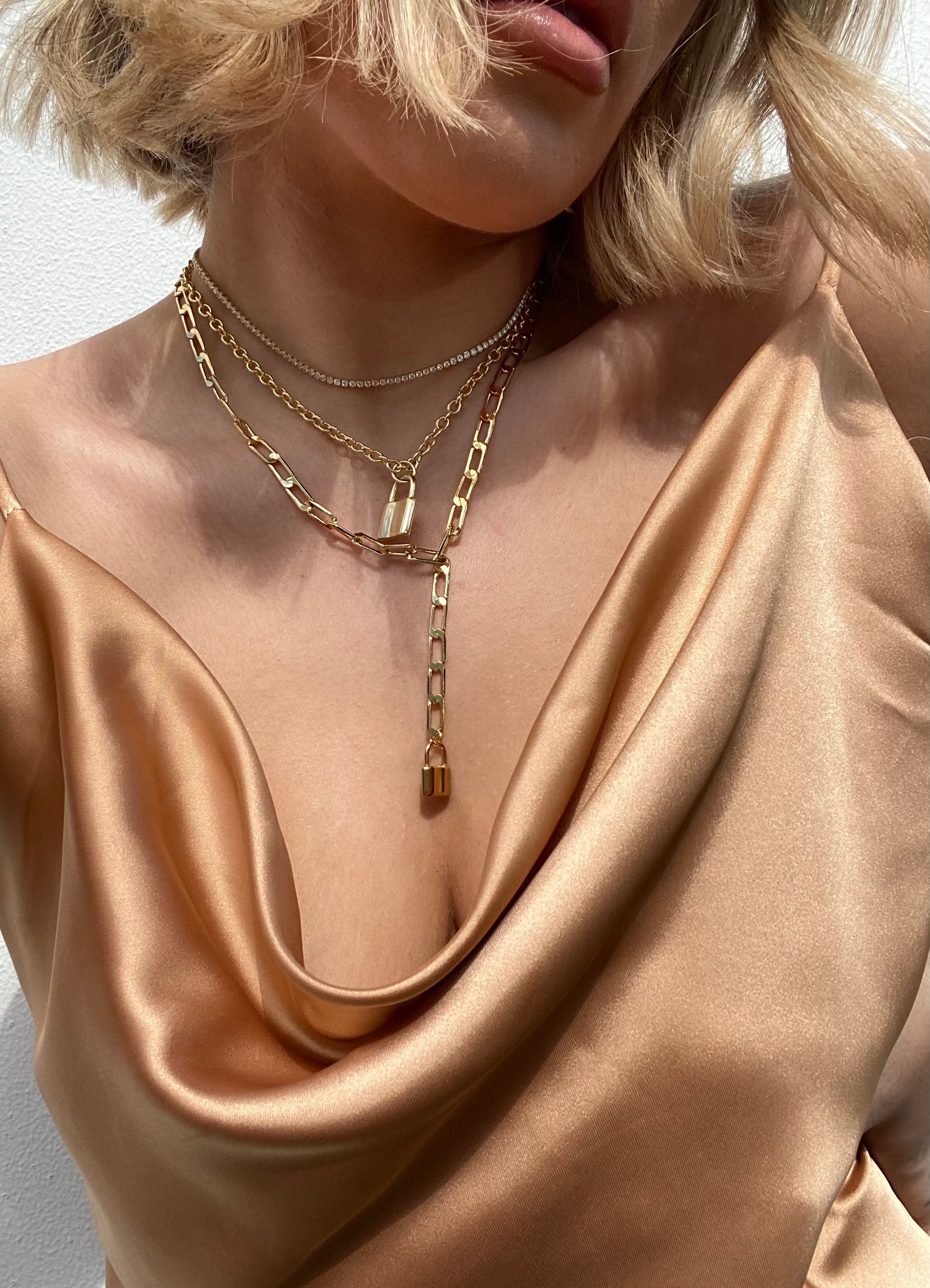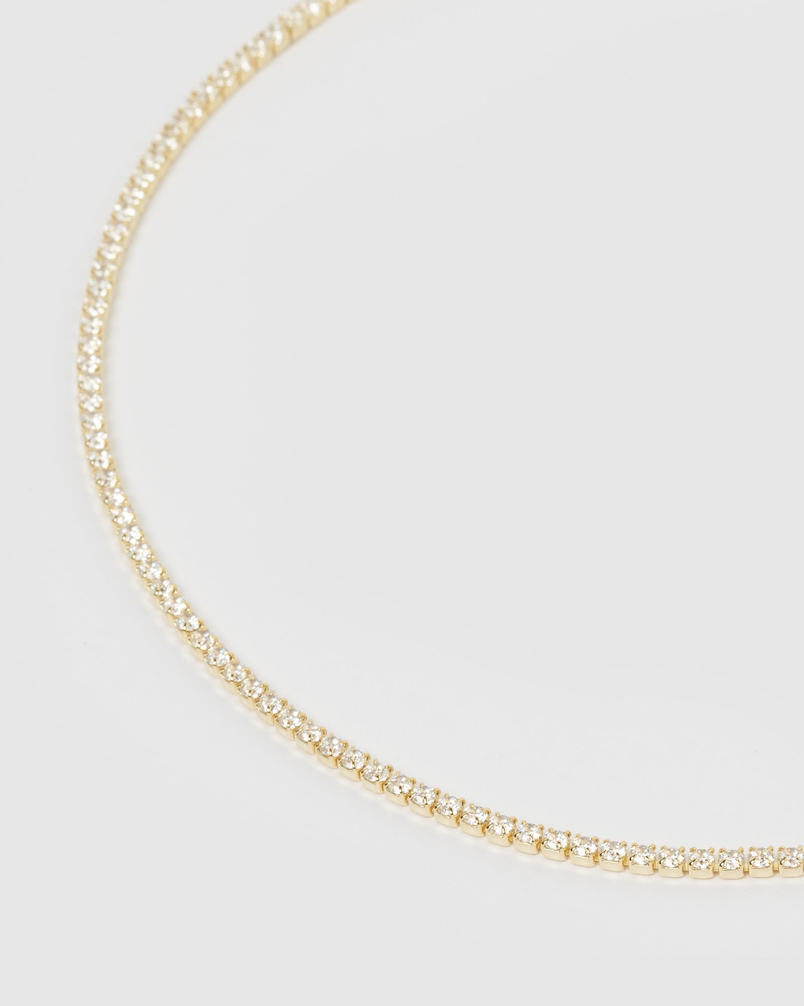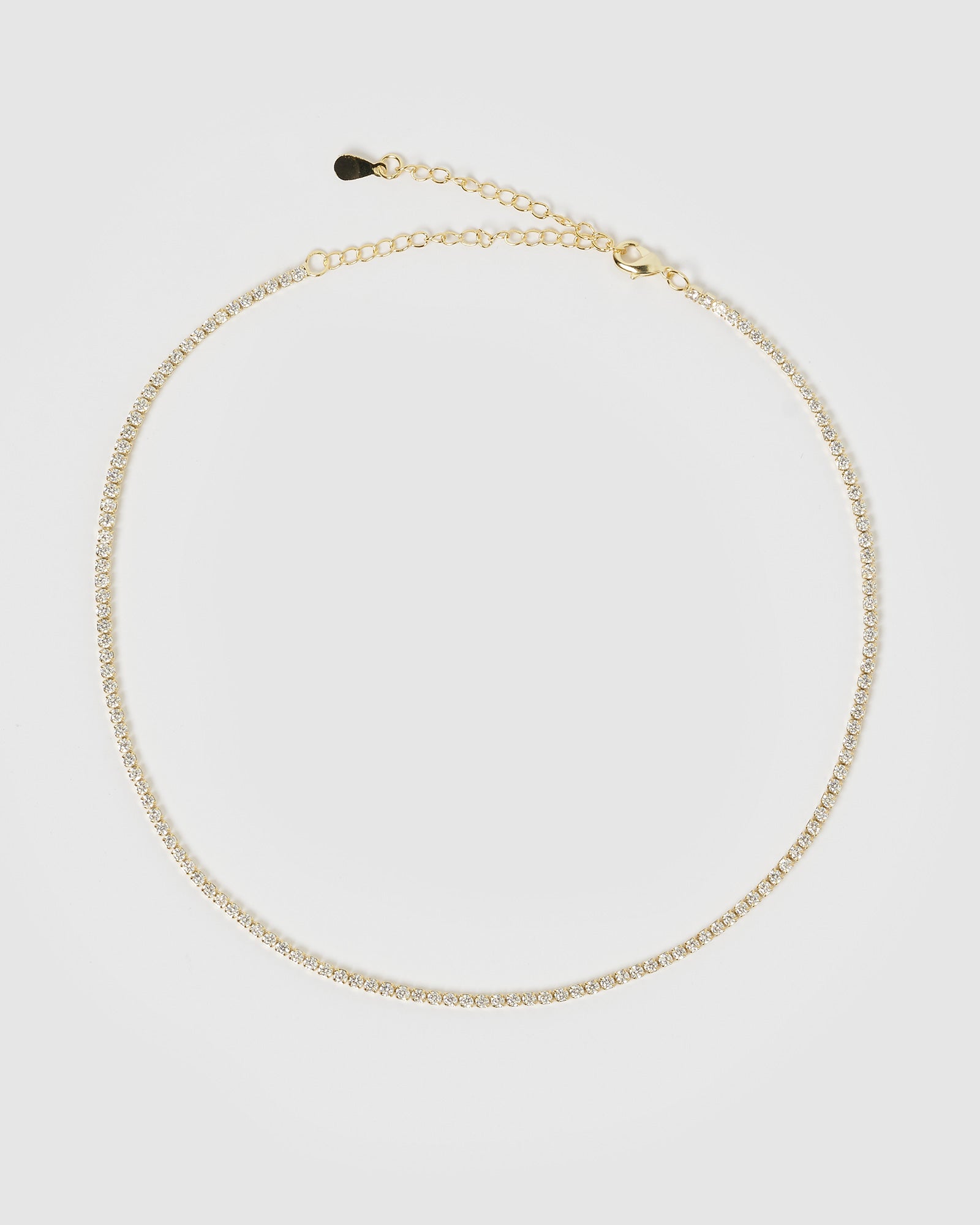 Our ReneeĀ Tennis Choker Gold ClearĀ is the perfect accessory to add that little bit of glam to your outfit.Ā This Tennis Choker is simple with an edge.Ā This fashion focused piece pairs easily with other necklaces to layer or holds it own worn alone.Ā