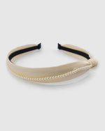 Add a touch of elegance to any look with the Harlow Pearl Headband. Featuring a beautifully knot detail of soft fabric on the side, this headband is finished with delicate row of pearl detailing for a feminine, elevated finish. Whether you're styling it with loose waves or a sleek bun, this accessory brings effortless charm to both everyday outfits and special occasions. Comfortable to wear and designed to make a statement.