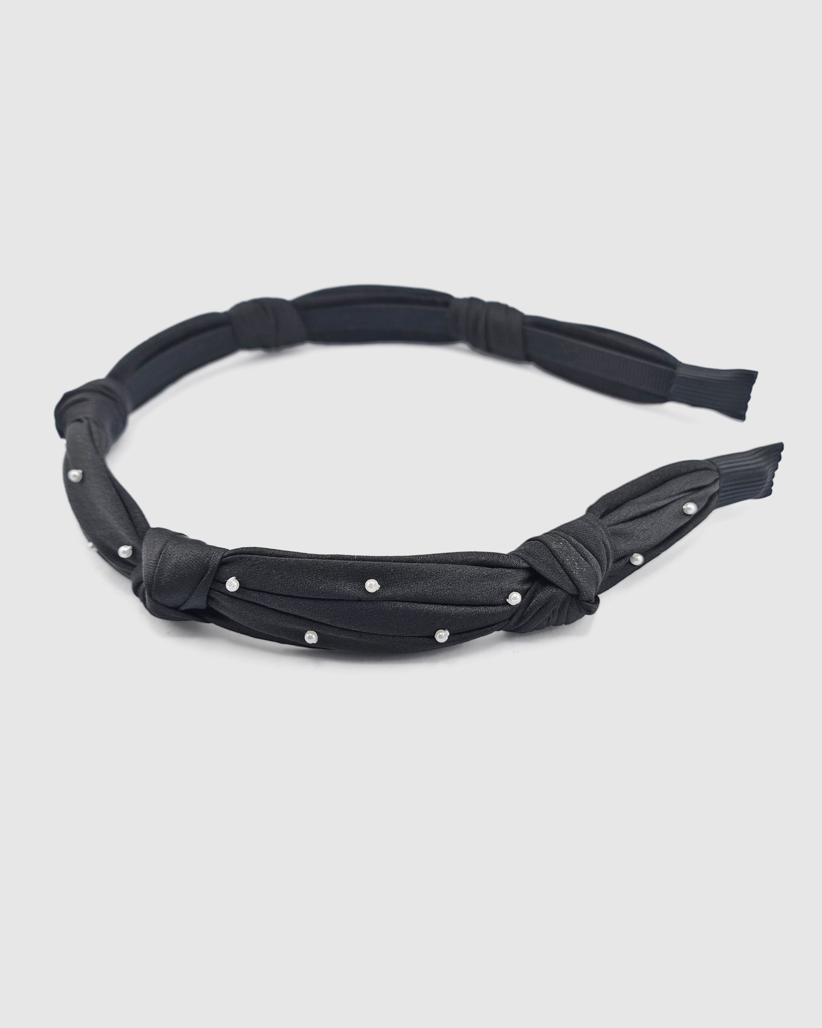 The Zoey Pearl Headband is crafted with comfort in mind, making it ideal for day-to-night stylingâfrom casual brunches to special occasions. The scattered pearl accents add a timeless touch, while the knotted fabric design creates a chic, on-trend silhouette.