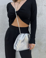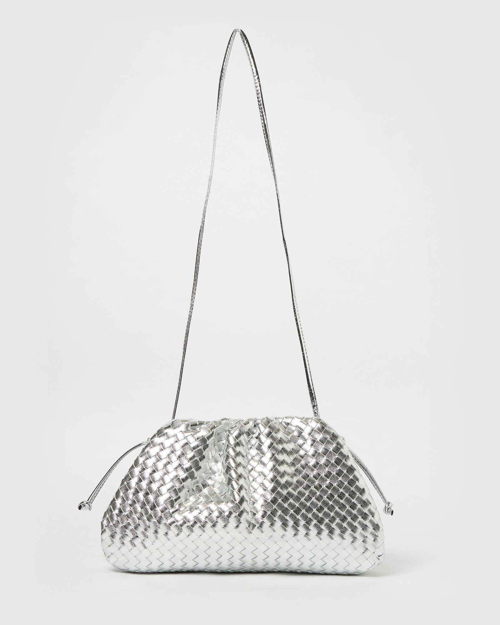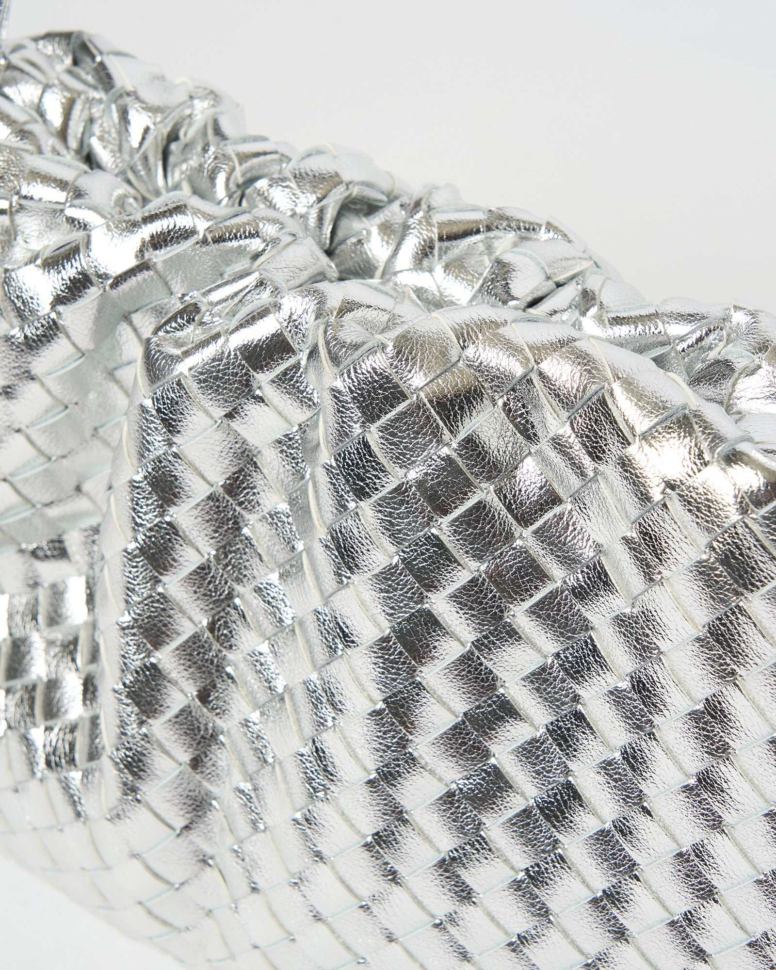 The Izoa Vincenza Woven Bag in Silver combines eye-catching style with practical functionality. This statement leather handbag showcases beautiful woven construction that adds texture and sophistication to any outfit.