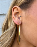 Perfectly shaped Alessia Hoop Earrings Gold will be your next staple piece. Add these unique 18K Gold Plated earrings to your collection. Playing geometrical shapes to add instant style to your look. These dainty hoops, perfect for everyday wear. Wear them on their own or pair them with huggies, studs or ear cuffs!
