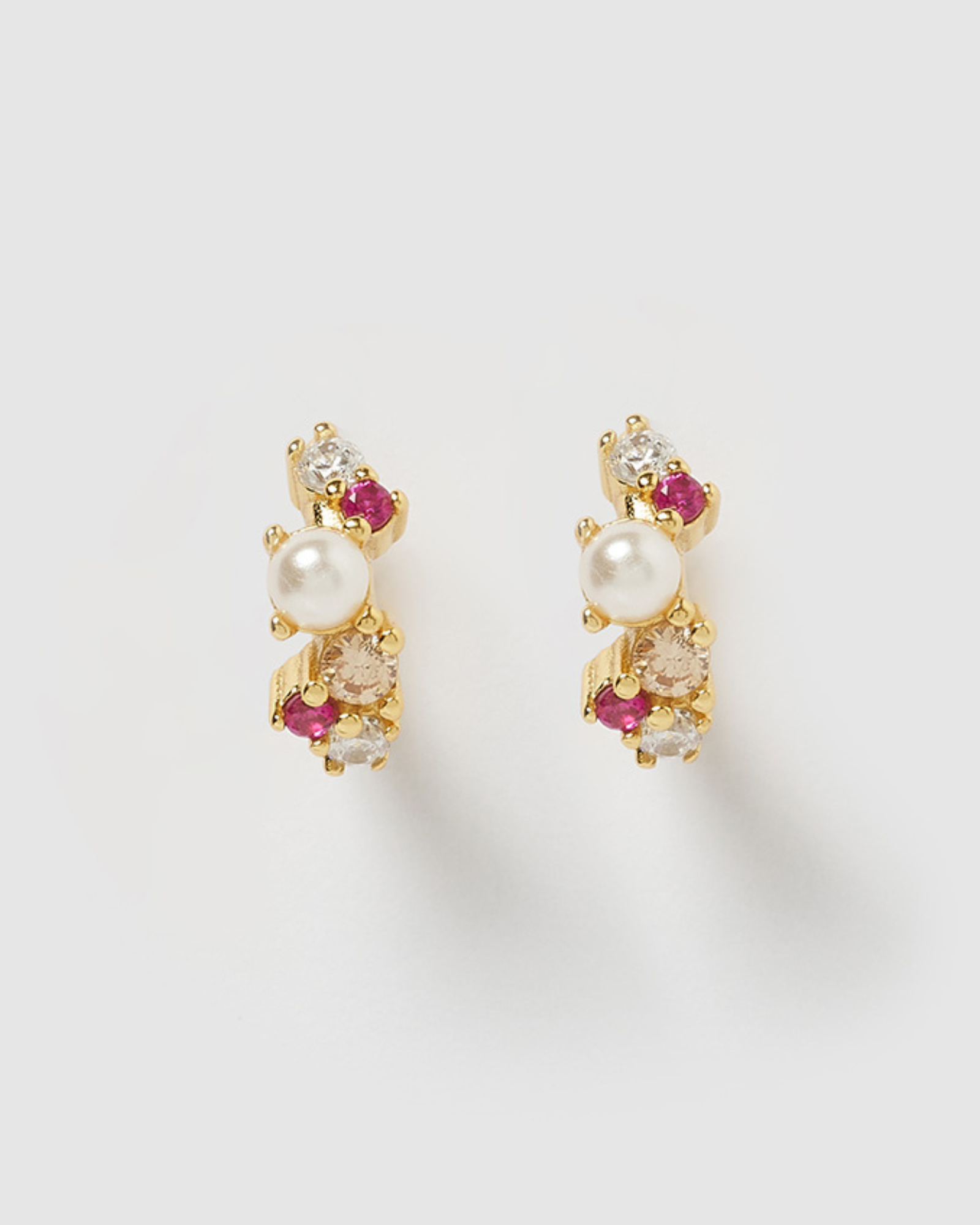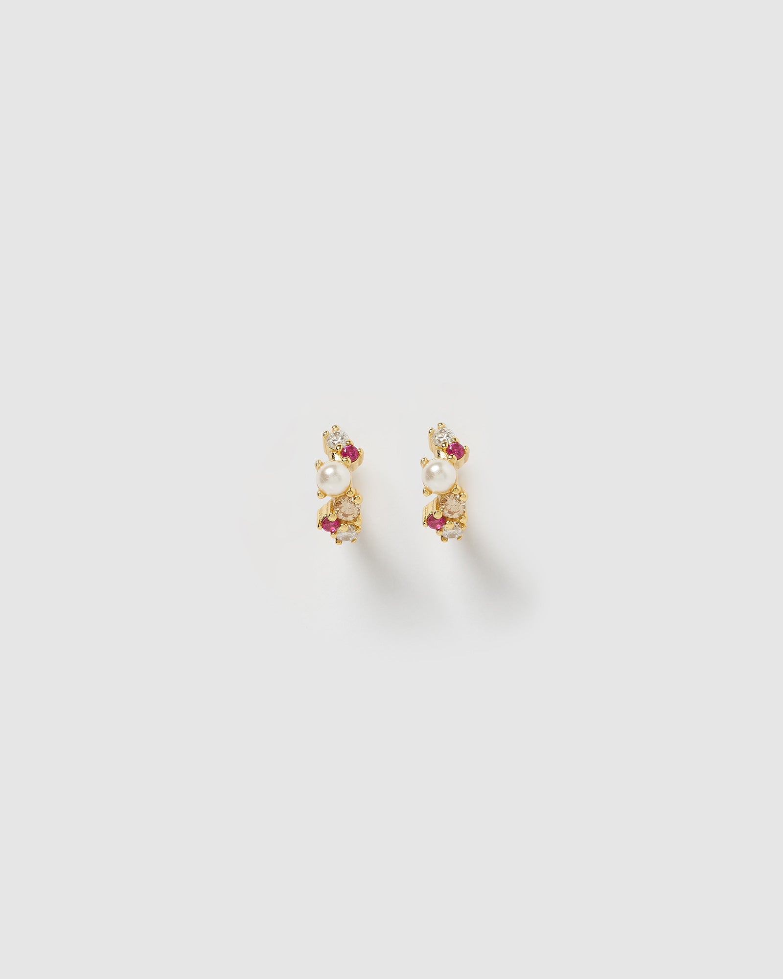 The Carina Huggie in Gold Pink is a mini style huggie. The thin structure with cubic zirconias and pearls added into the huggie adds a sense of edge to any look. A simple accessory making this the perfect statement piece.