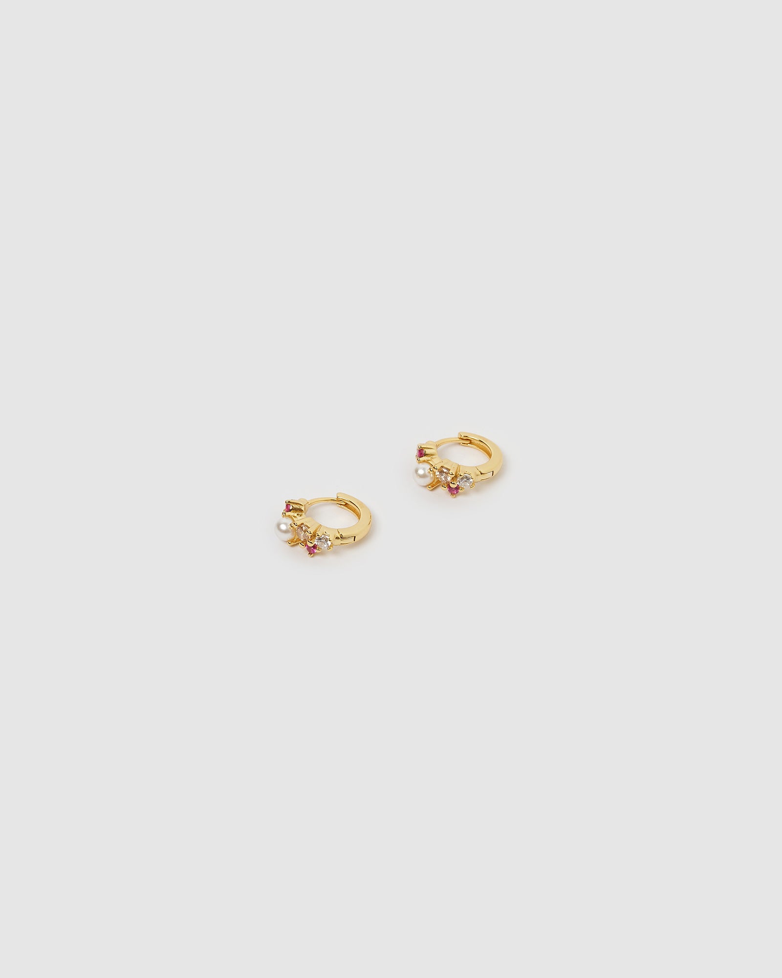 Unit price / perThe Carina Huggie in Gold Pink is a mini style huggie. The thin structure with cubic zirconias and pearls added into the huggie adds a sense of edge to any look. A simple accessory making this the perfect statement piece.