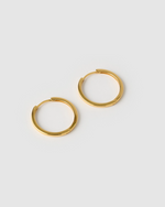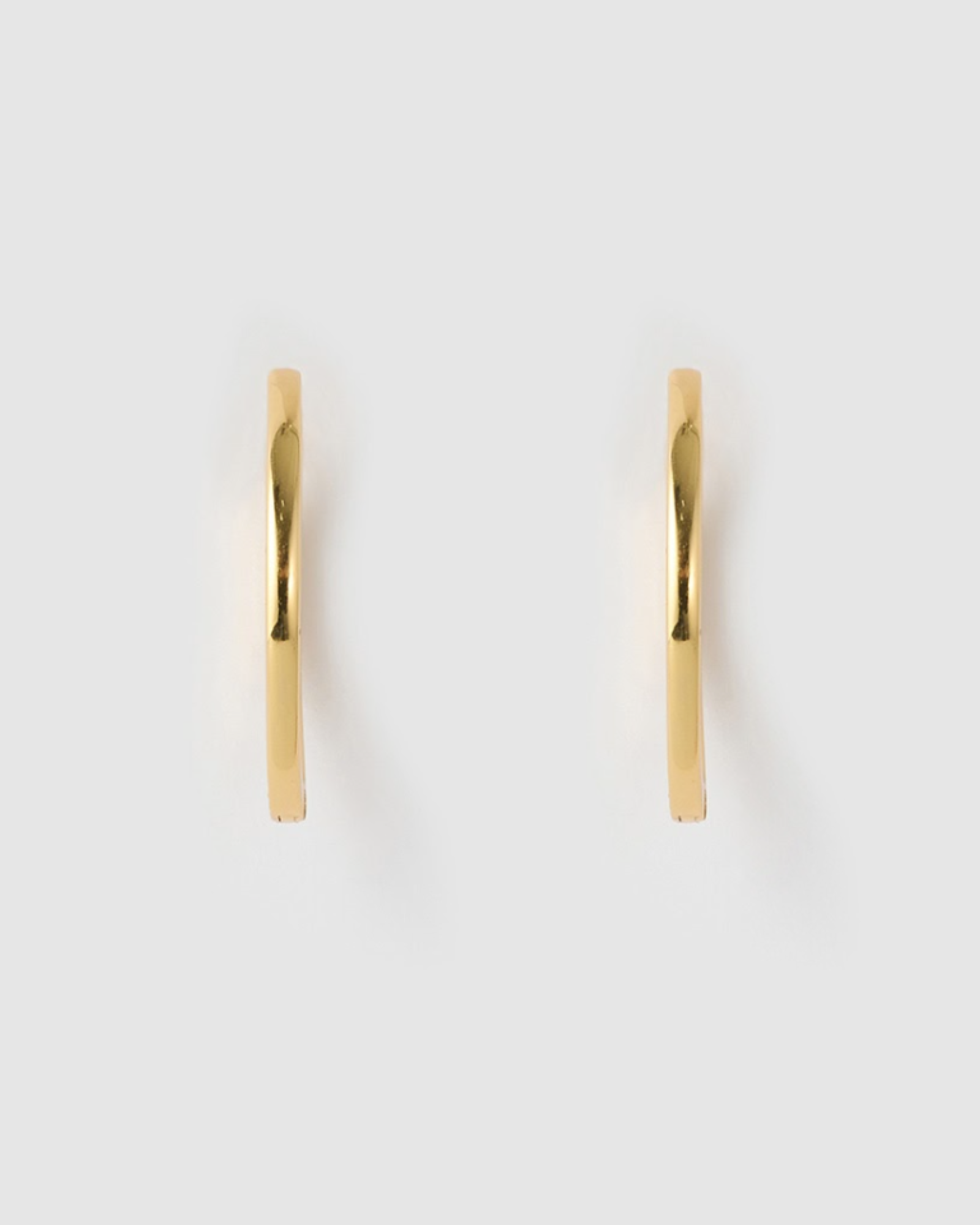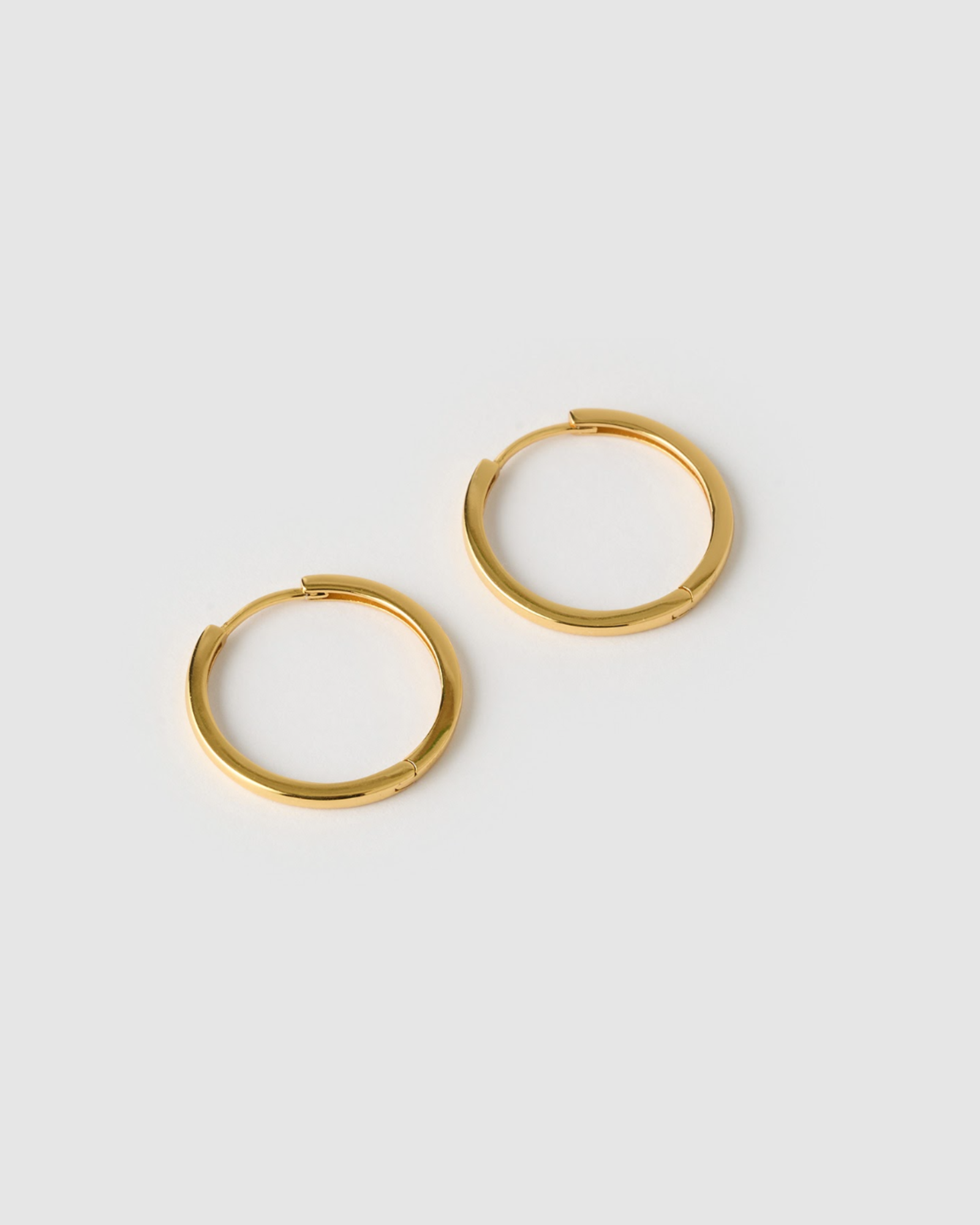 Shop huggie style earrings online at Izoa. Our Large Solid Huggie Earrings in Gold are petite style fit. These smooth finished earrings can be worn everyday and paired with similar style huggies for a layered textural look.