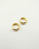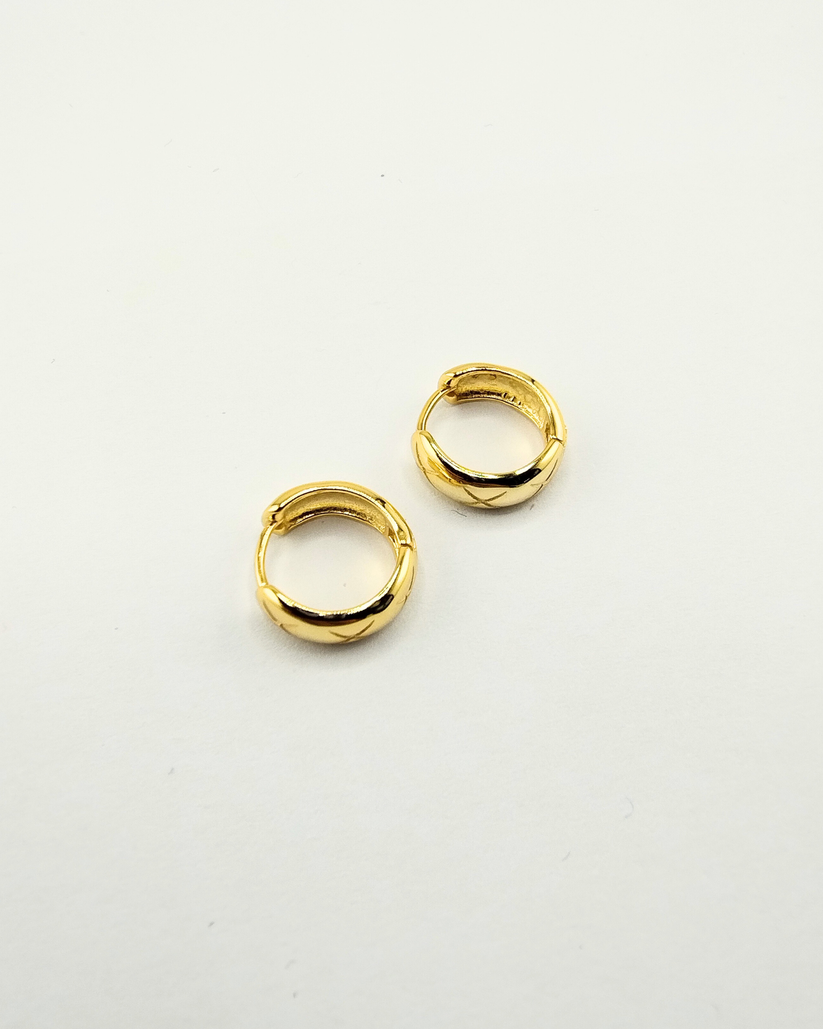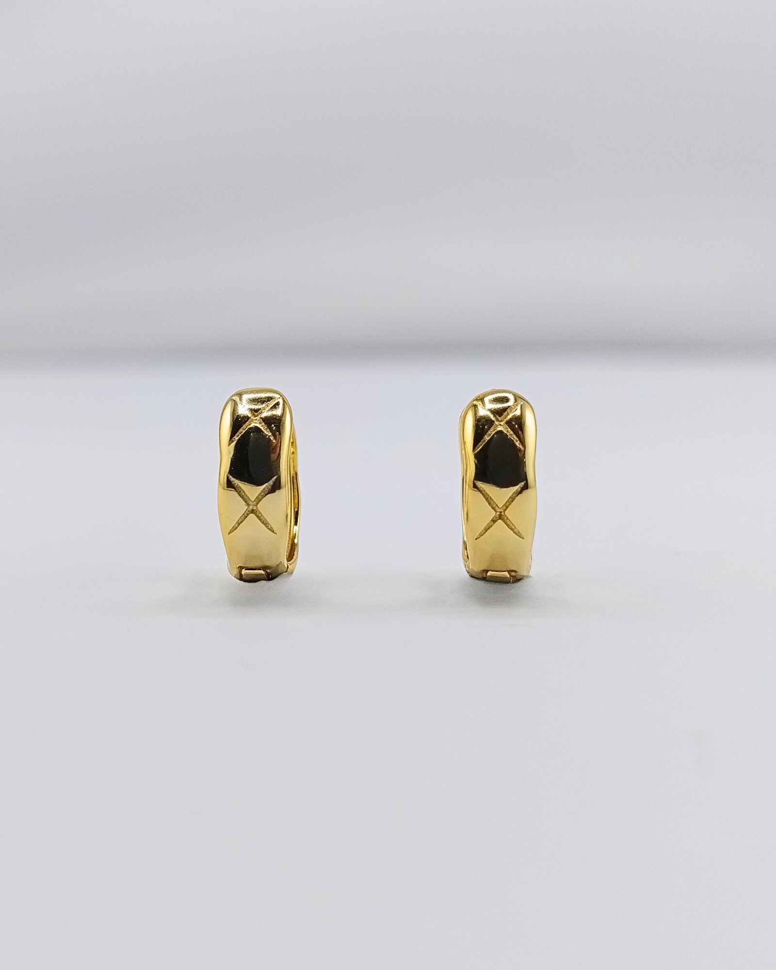 Make a bold, minimalist statement with the Rue Huggie Earrings. Crafted from premium sterling silver and coated in rich 18k gold plating, these small wide, solid huggie earrings feature a sleek silhouette adorned with subtle cross marks for a modern, textured finish.