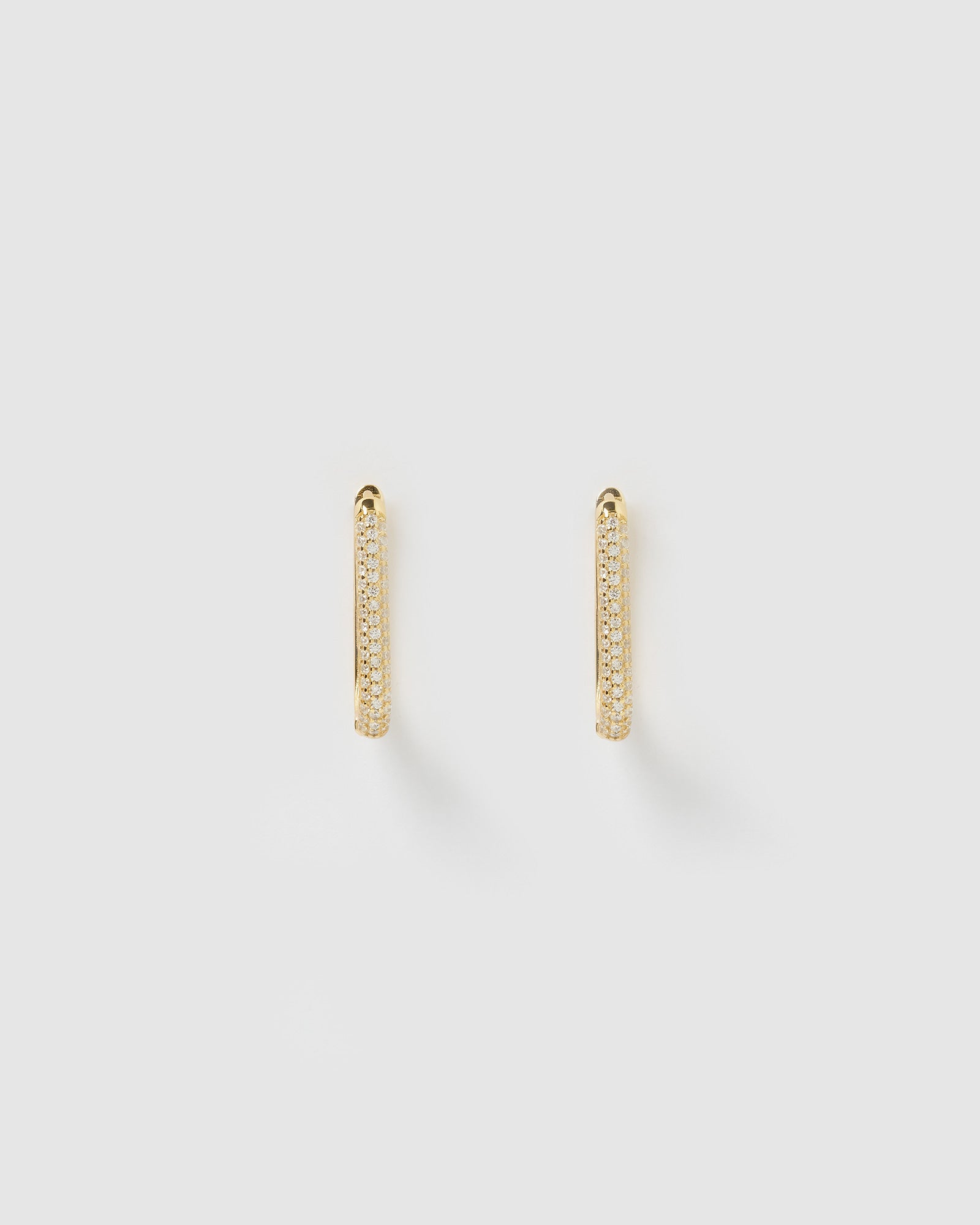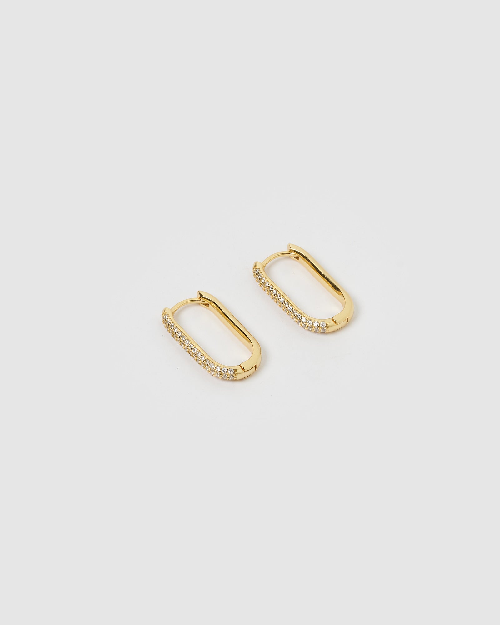 The Voleta Hoop Earrings in Gold are a jewellery piece must have for the hoop earring connoisseur! Featuring a rectangle rounded design with one side covered in cubic zirconia, these lightweight hoop earrings are sterling silver, gold in tone and are the perfect staple for your daily edit!