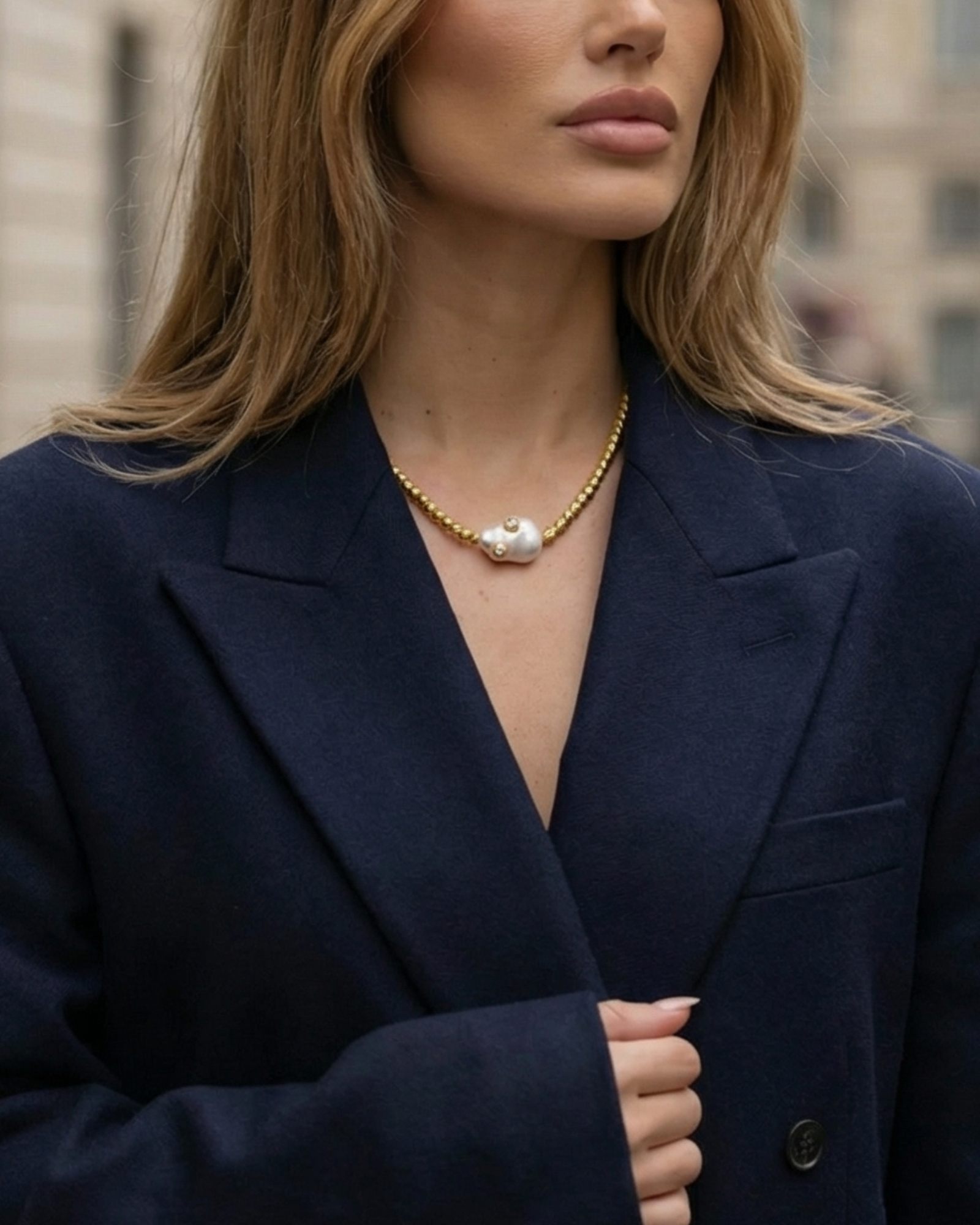 Izoa Soleil Freshwater Baroque Pearl Necklace Gold Clear