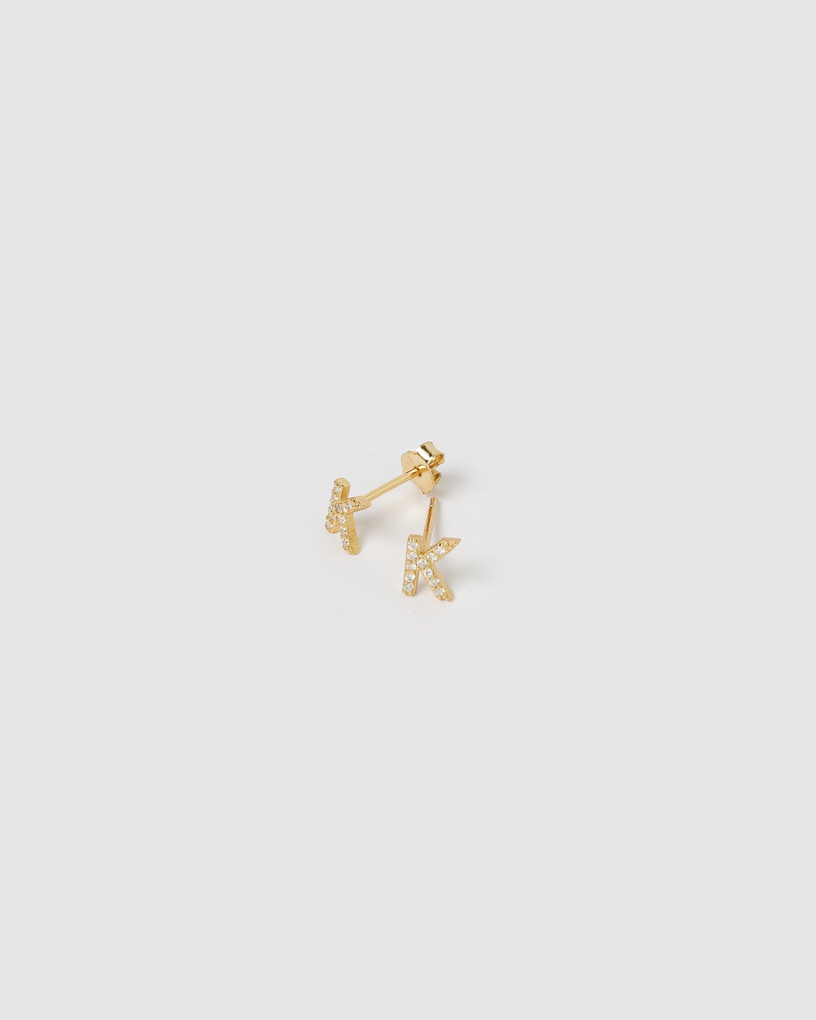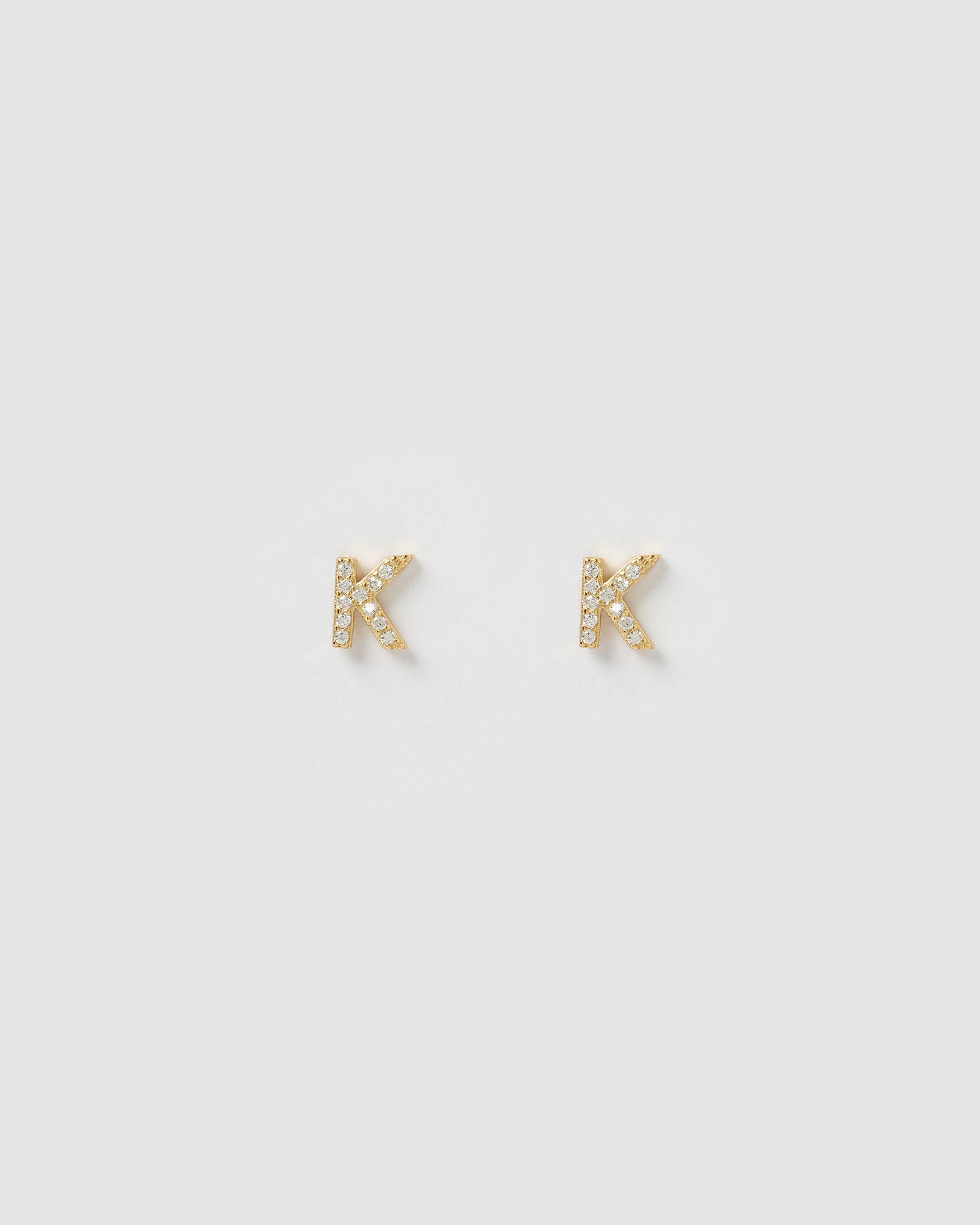 Personalise your look with our Alphabet Letter K Stud Earrings in Gold. A chic minimalistic style embellished with cubic zirconias for that added sparkle. Personalise your look for any day or night outfit. These cute alphabet sparkly studs make the perfect gift. Available A-Z