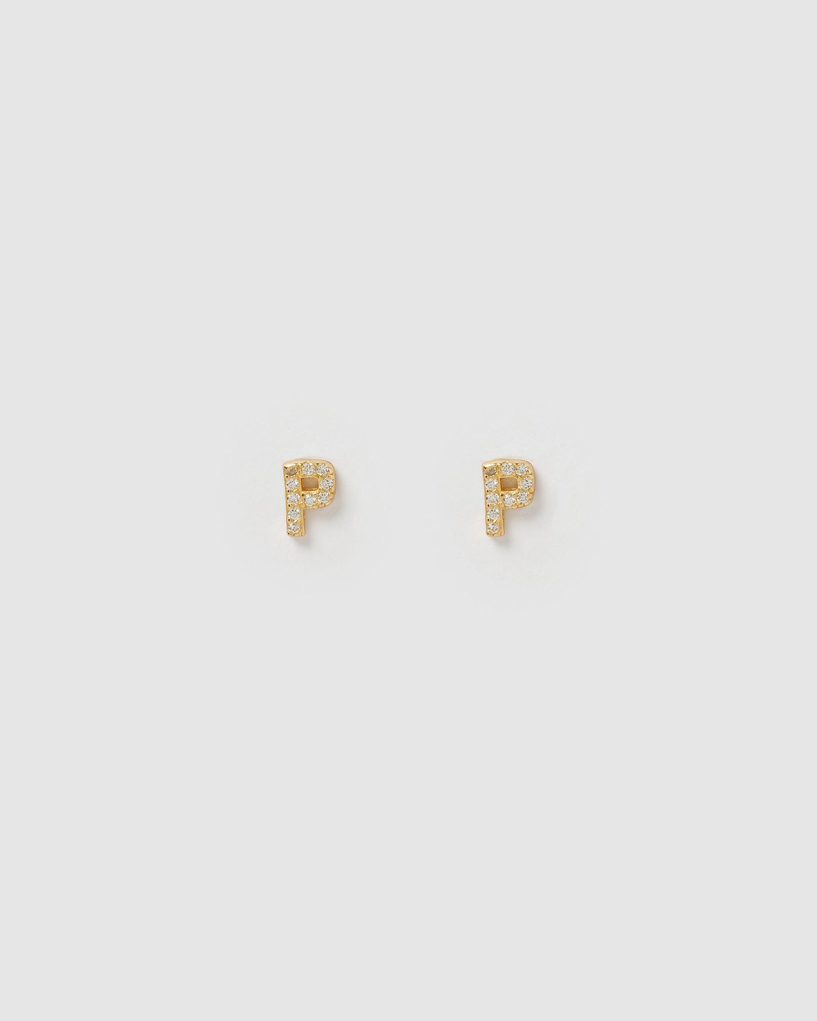 Personalise your look with our Alphabet Letter P Stud Earrings in Gold. A chic minimalistic style embellished with cubic zirconias for that added sparkle. Personalise your look for any day or night outfit. These cute alphabet sparkly studs make the perfect gift. Available A-Z