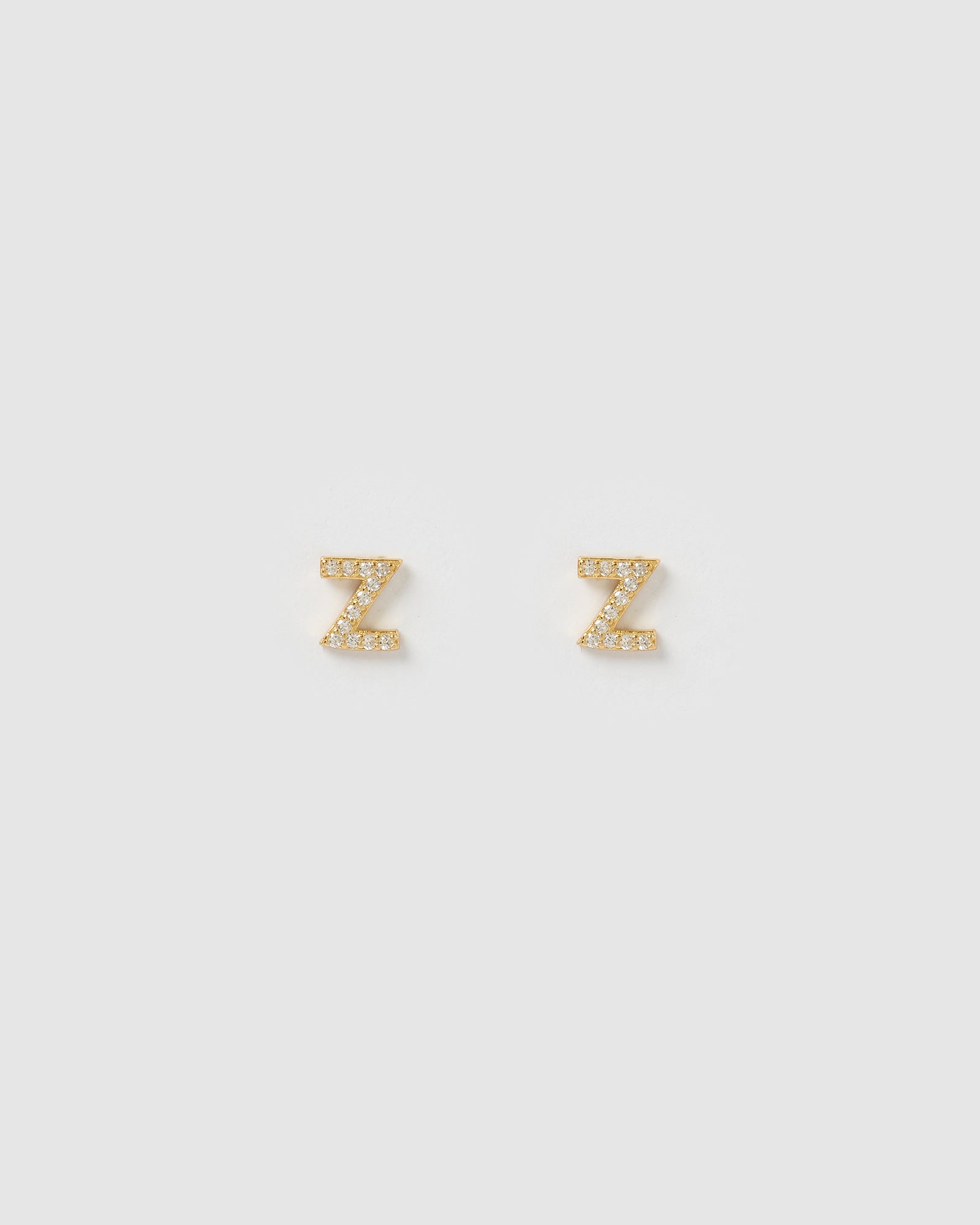 Izoa Alphabet Mini Letter Z Stud Earrings Gold