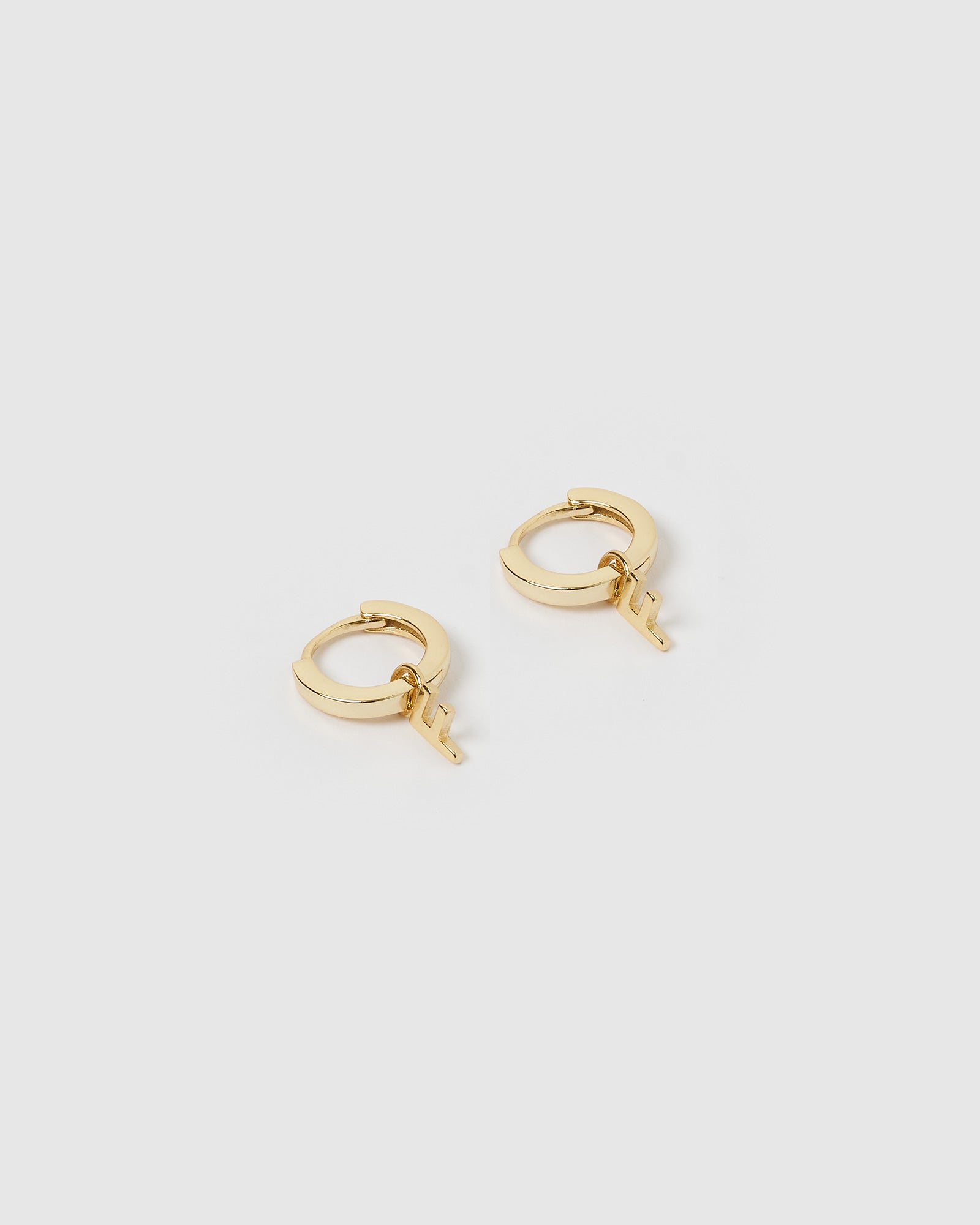 Izoa Alphabet Letter F Huggie Earrings Gold