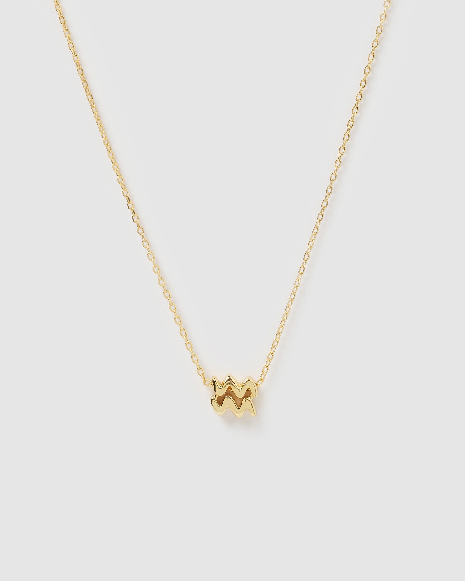 Izoa Aquarius Star Sign Symbol Necklace Gold