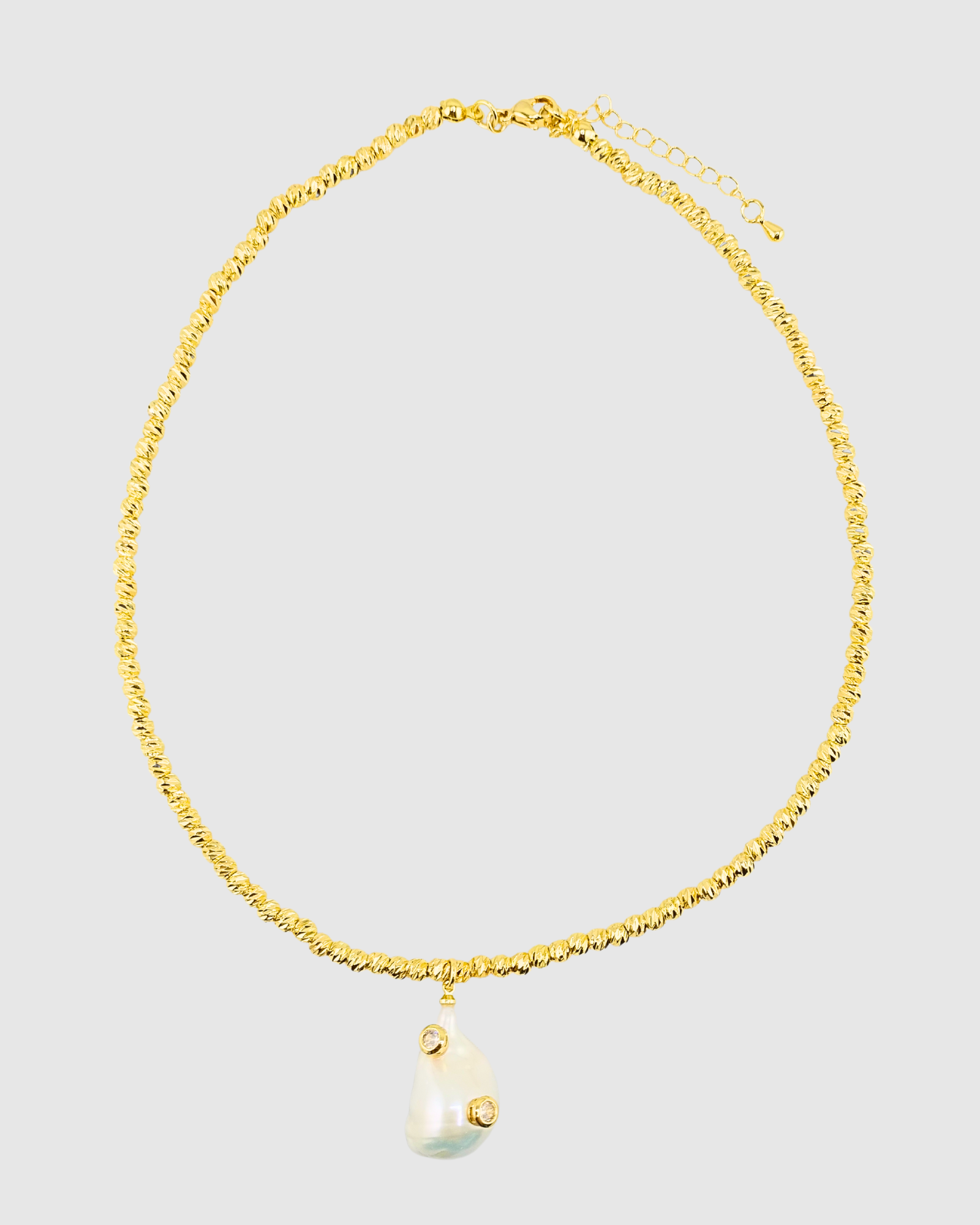 Izoa Calista Drop Pearl Necklace Gold Clear