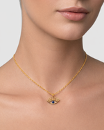 Shop the Melanie Eye Necklace in Gold Blue, this simple everyday accessory can be worn on its own or pared within similar pieces for a chic layered look. The 18k gold plated sterling silver necklace is one to have in your accessories collection.