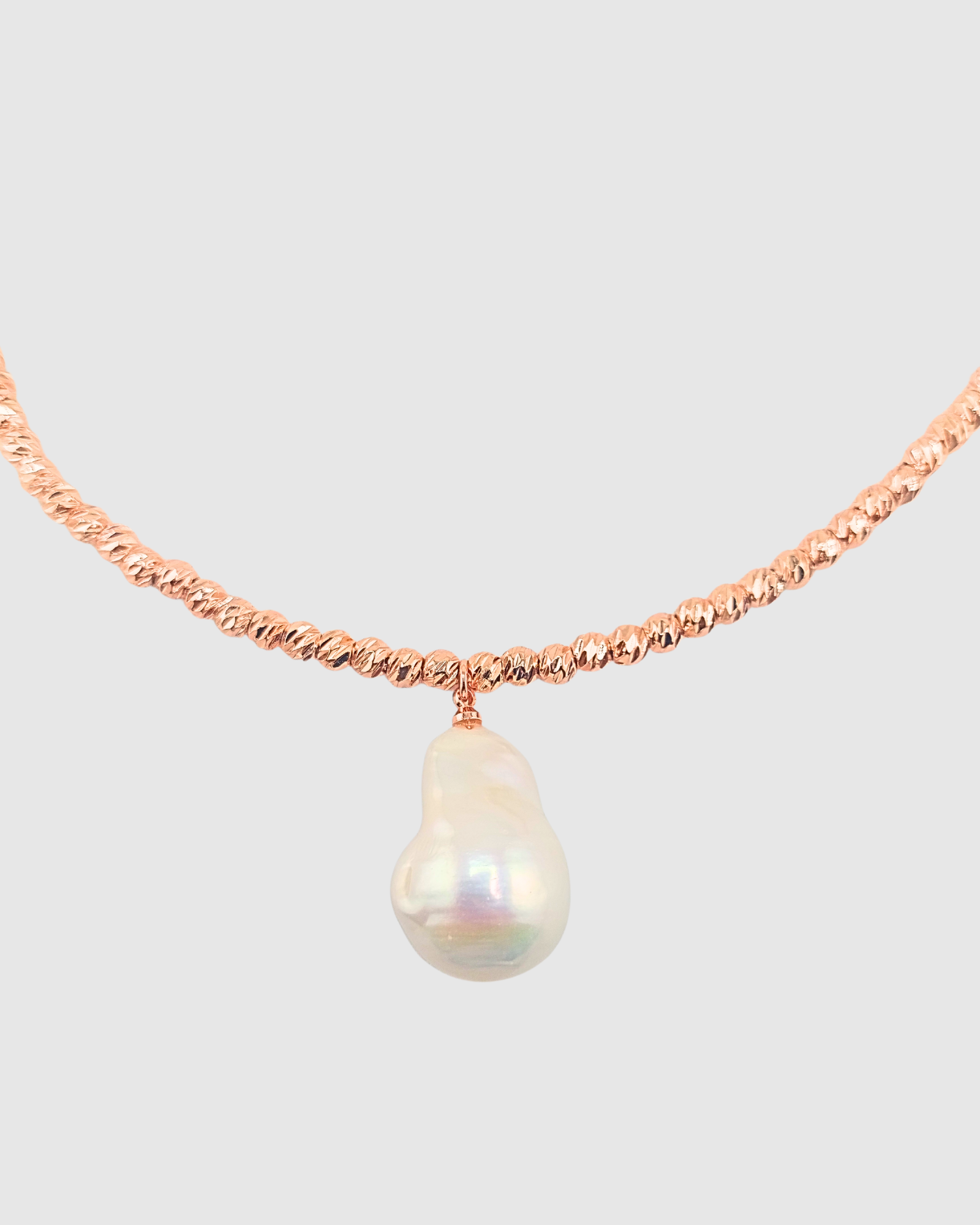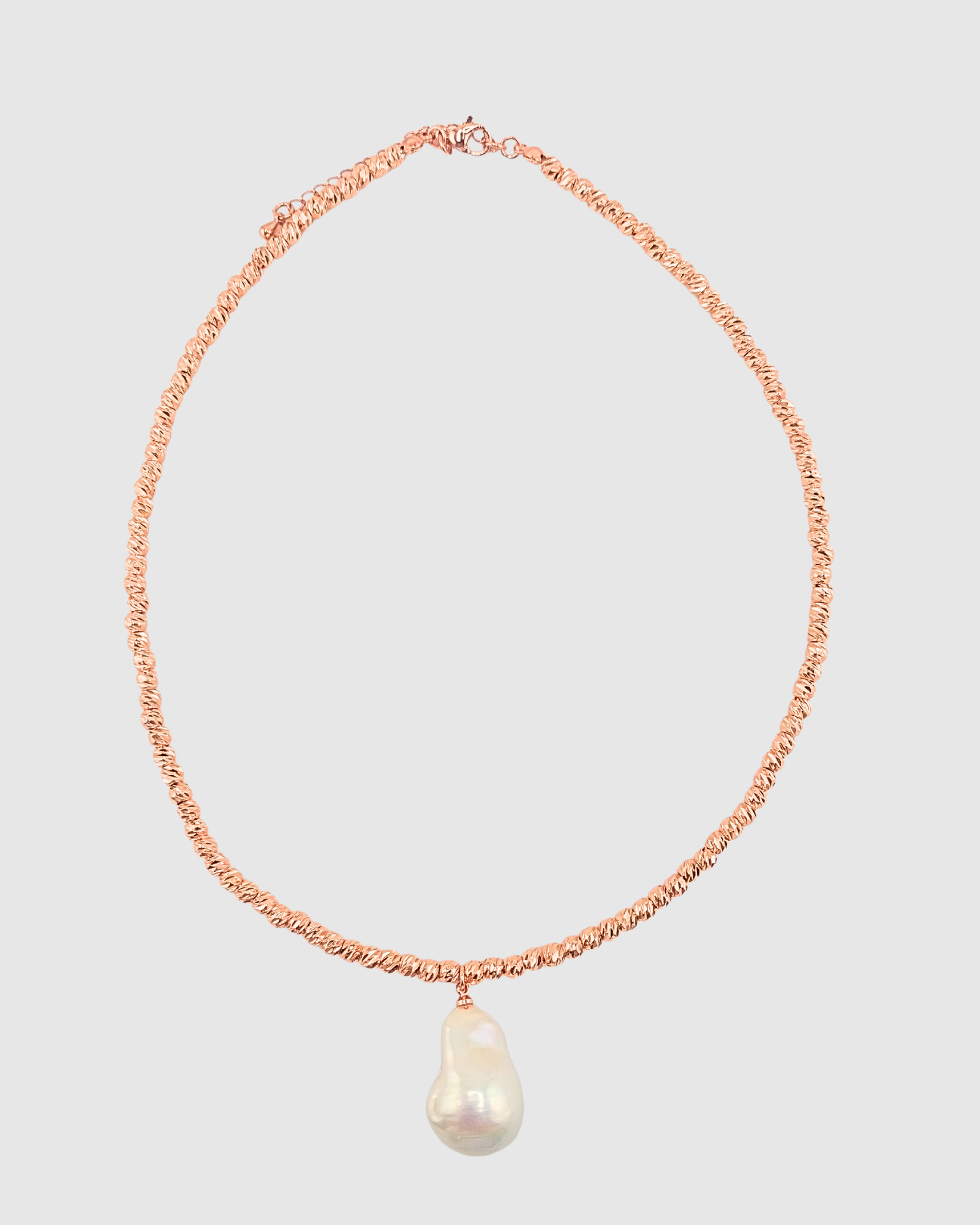 Izoa Odette Drop Freshwater Baroque Pearl Necklace Rose Gold