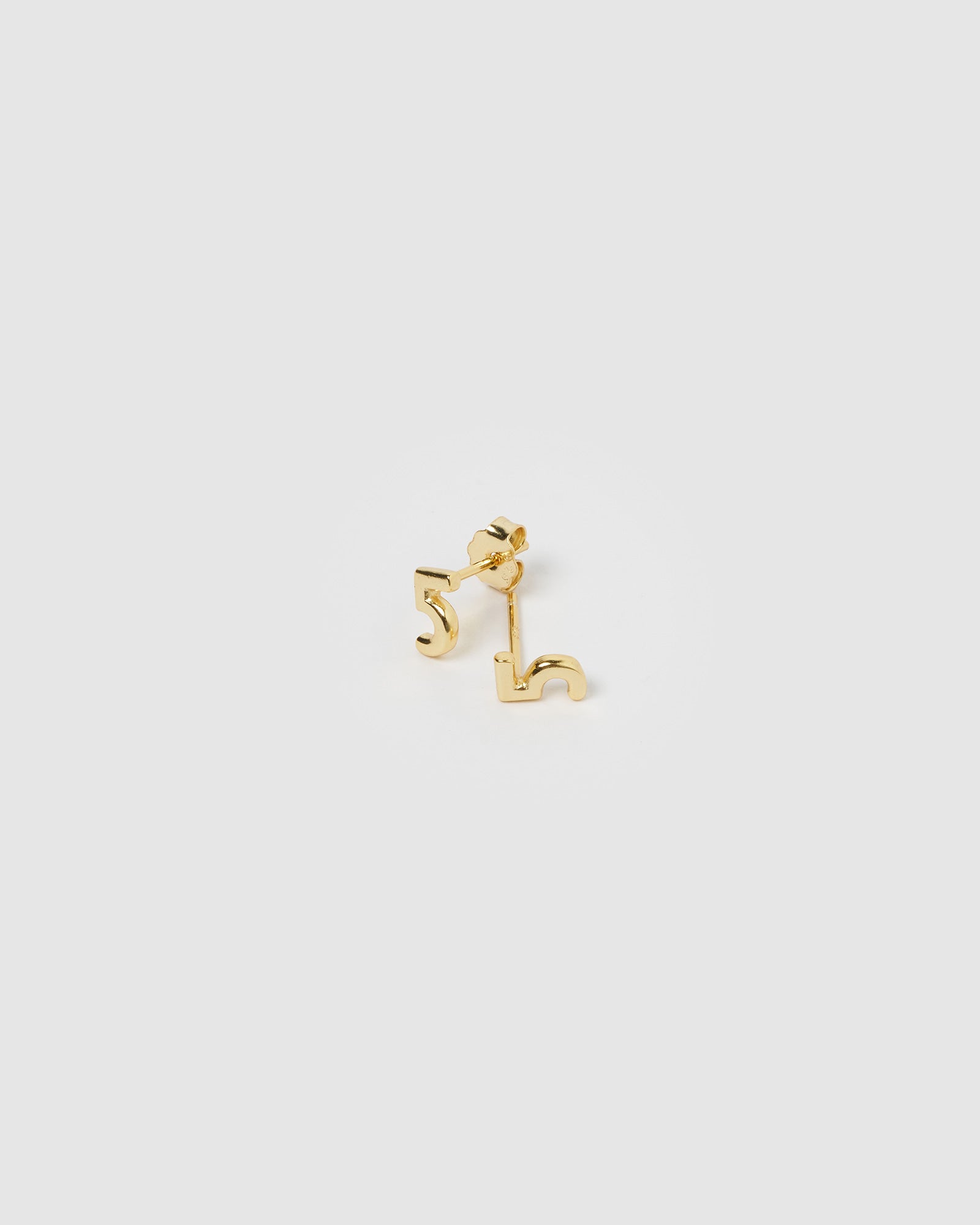 Personalise your look with our Number 5 Stud Earrings in Gold. Get your lucky number or birthdate for a personalised look. These cute studs make the perfect gift. Available 0-9