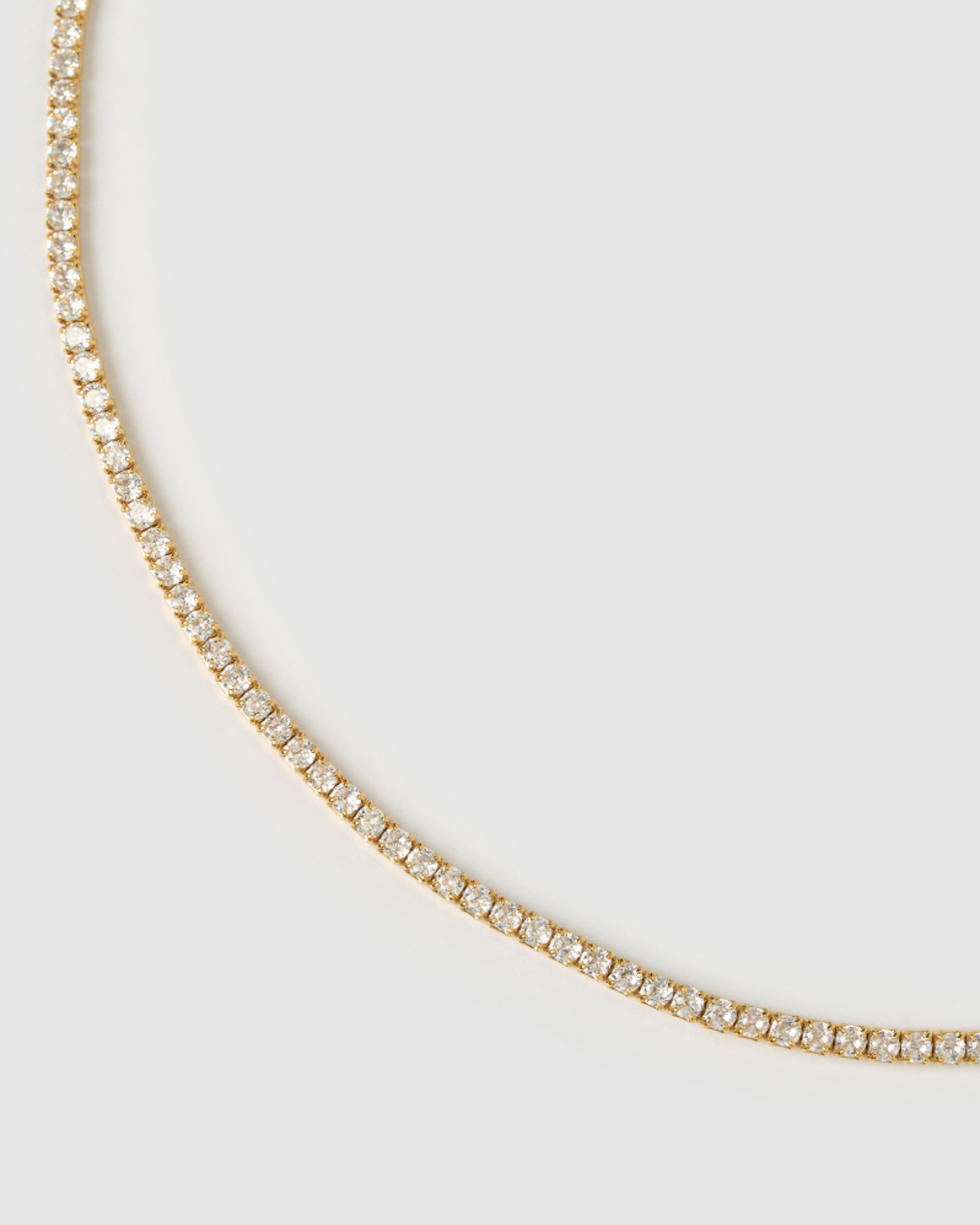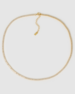 Classic and elegant ourĀ Mini Tennis Choker in GoldĀ is a timeless piece to add to your jewellery collection. This simple tennis style Choker exudes style with small dainty set cubic zirconia clear stones,Ā gold plating and a refined slide lock clasp. Wear it dressed down for day with a simple black dress or wear it at night for an elusive touch of sparkle at dinner parties, birthdays, cocktail events or any special occasion you need to dress up for. It would also be the perfect bridal jewel!