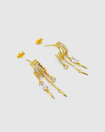 Unit price / perCreate the ultimate stacked look — without multiple piercings — with the Priya Trio Huggie Earrings. These illusion earrings feature three hoops in one stud, giving the effect of a full ear stack with just a single piercing. 18k gold plating charms and 2 cubic zirconia crystals hang from the hoops . Lightweight and statement-worthy, these 3-in-1 huggies are perfect for adding dimension and drama to your everyday style. No hassle, just high-impact shine.