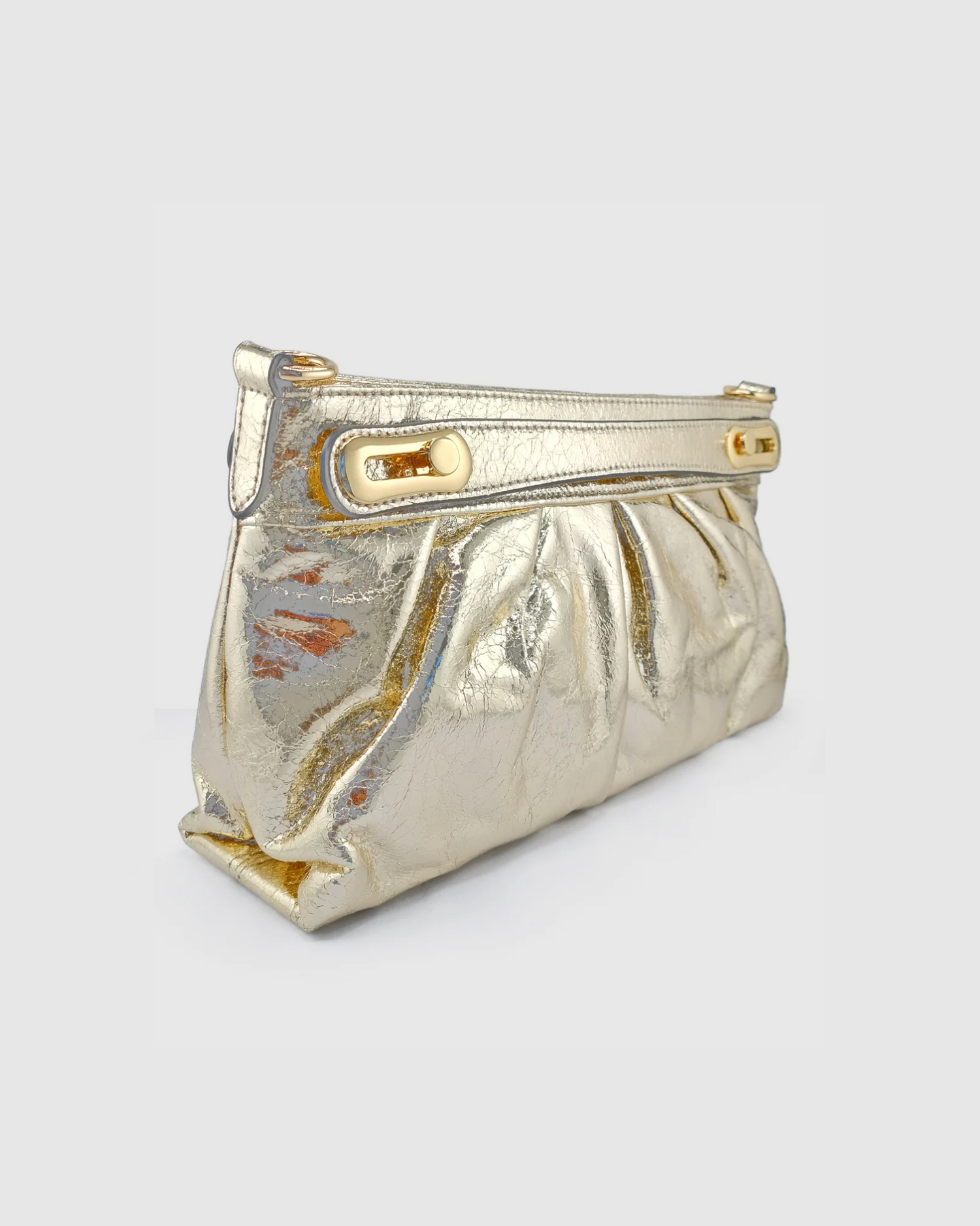 - Elegant gold PU leather with pleated front detailing