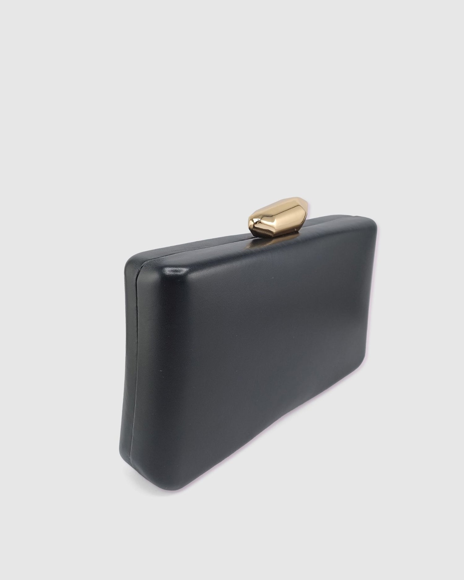 Effortlessly chic with a modern twist, the Izzy Clutch in Black is the perfect accessory to elevate your occasion-wear. Designed in a soft, rounded rectangle shape, this clutch features a standout wave-style gold top clasp, adding a sculptural, fashion-forward touch. The spacious interior easily fits your iPhone and daily essentials, while the long gold chain strap offers versatile crossbody styling. Ideal for bridal looks, events, or a night out, the Izzy adds elegance with an edge.