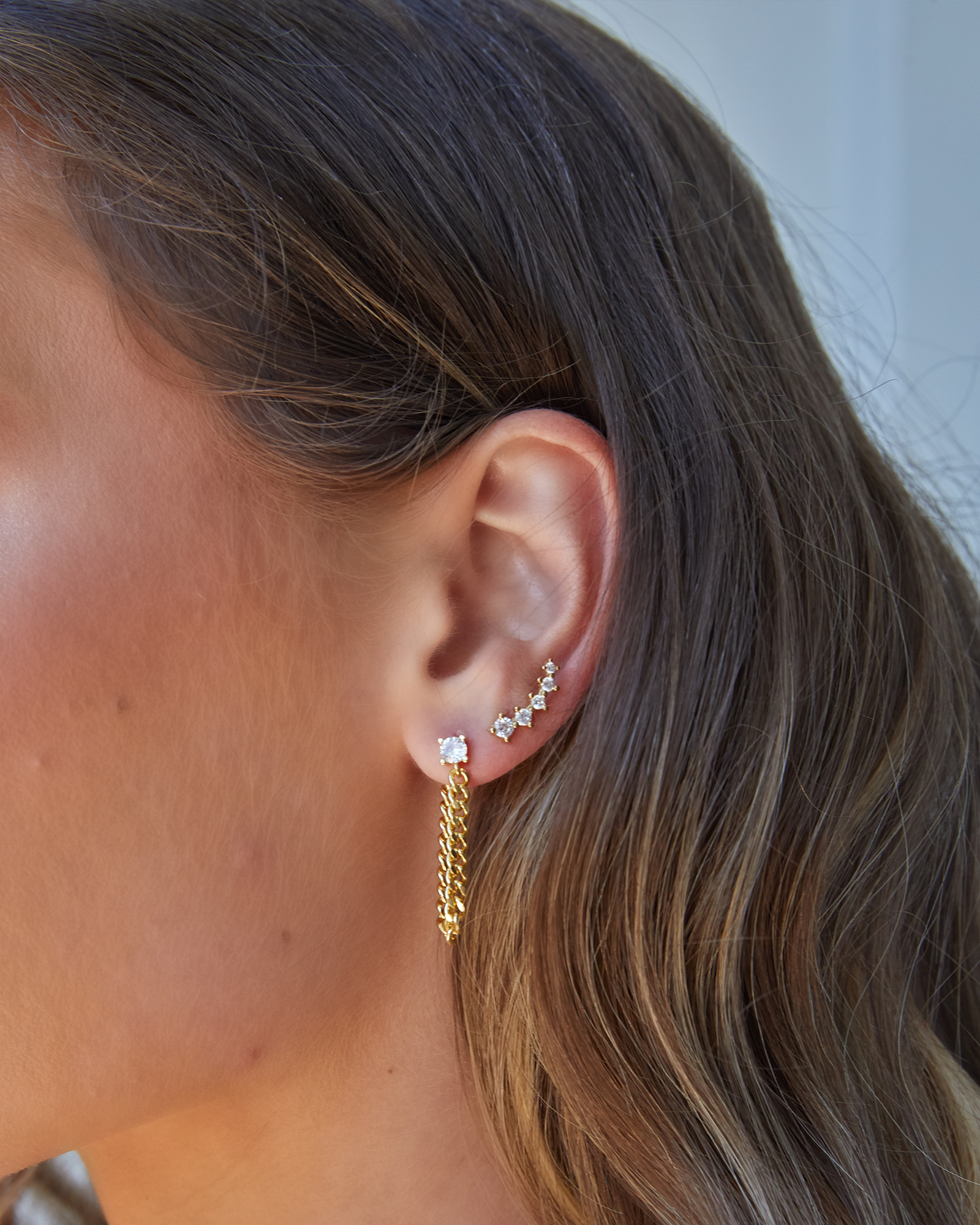 The perfect subtle way to accessorise! Our Annie Drop Stud Earrings feature unique and eye catching clear cubic zirconia and chain stud with a delicate loop & drop that fall beautifully down the ear.