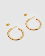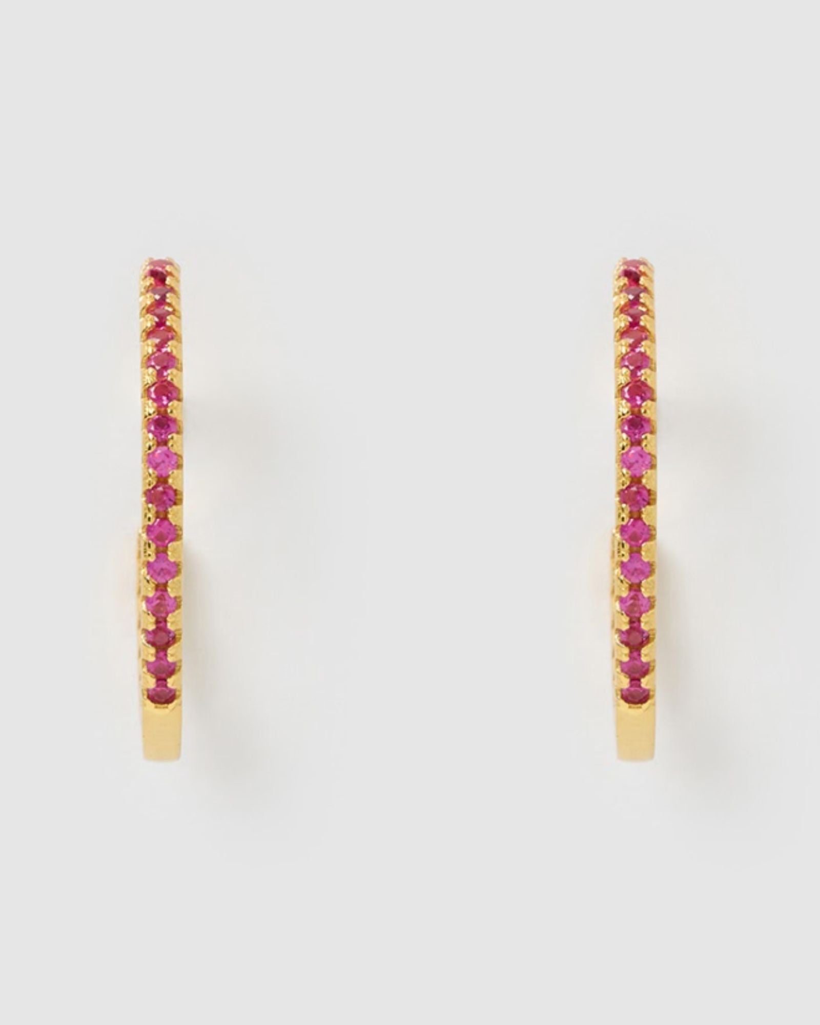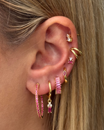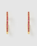 The Belle Hoop Earrings in Gold Pink are embellished in pink cubic zirconias crystals .