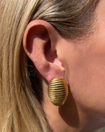 The stunning shell shape adds a touch of intrigue and modern flair to these gold statement earrings, making them a standout accessory for any occasion. The secure stud closure ensures a confident and comfortable fit, allowing you to effortlessly elevate your style.