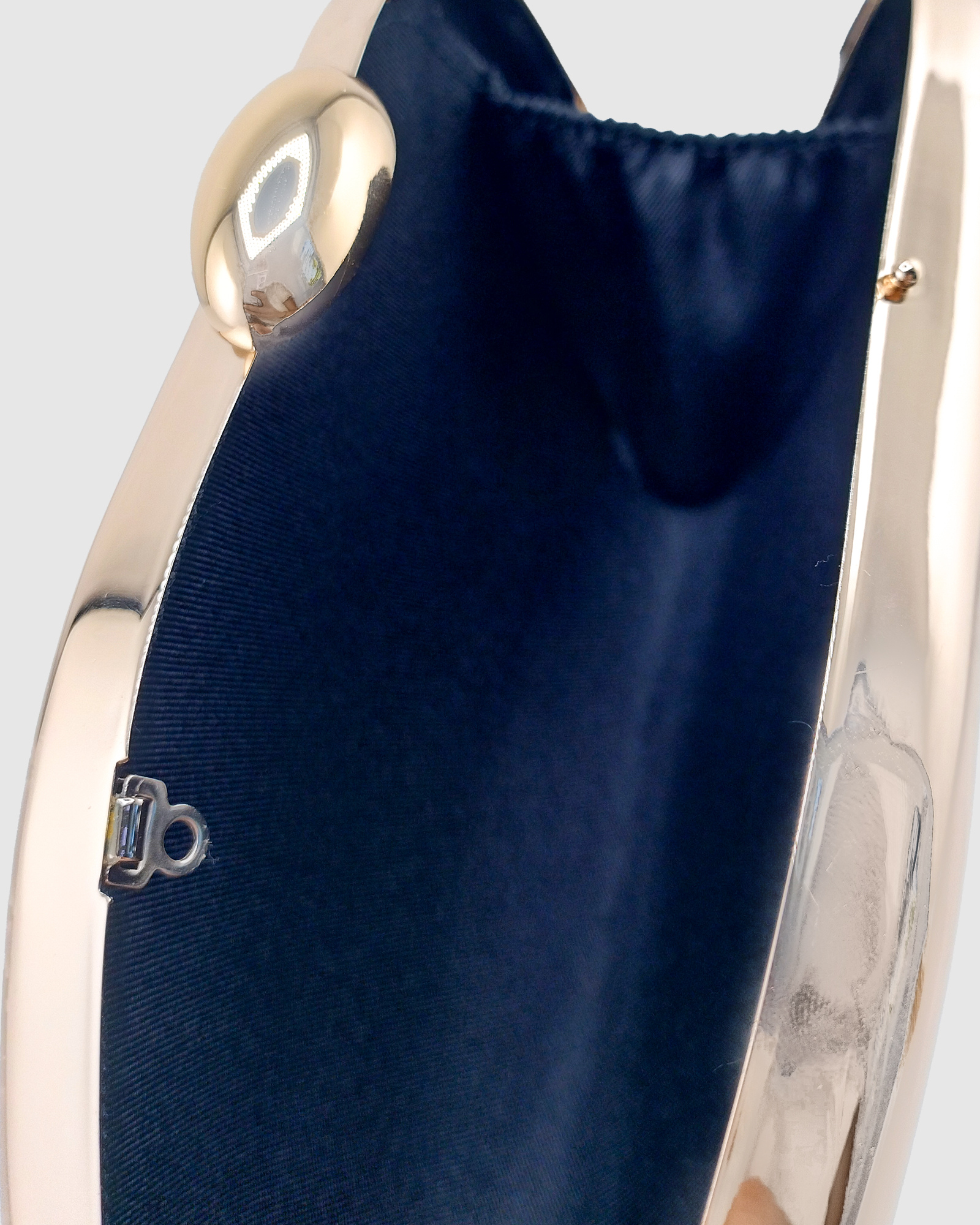 Make a glamorous statement with the Clara Clutch in Gold, a dazzling accessory designed from reflective gold metal. Its sleek curved, asymmetrical silhouette offers a modern and artistic edge, making it the perfect clutch for weddings, cocktail parties, galas, and special events.